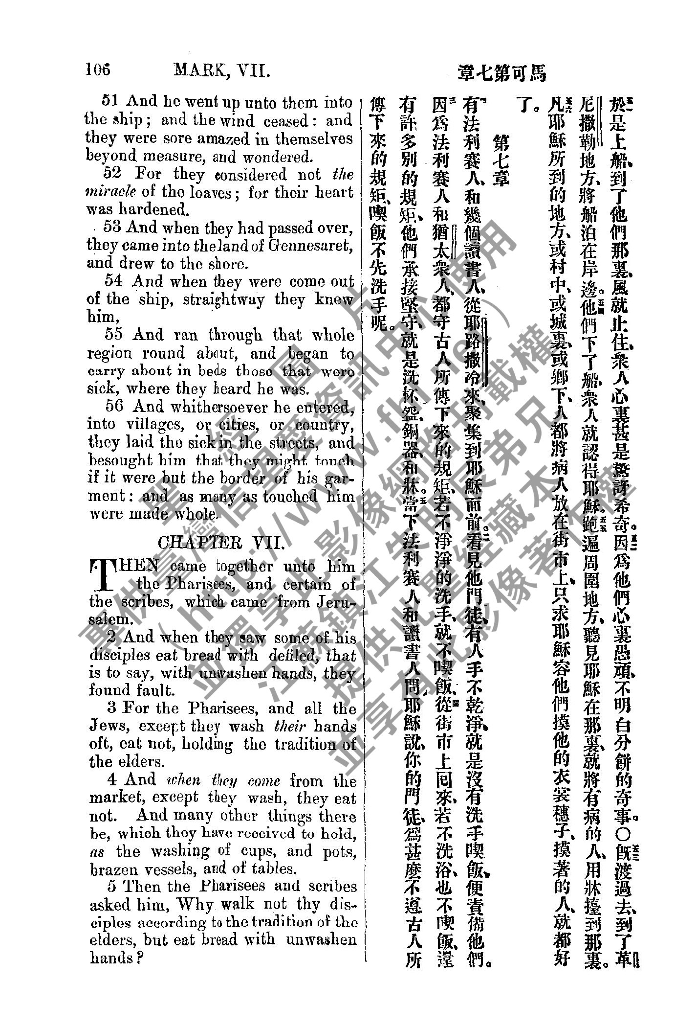 1885年新約全書 馬可福音 6 章 51 節到 7 章 5 節
