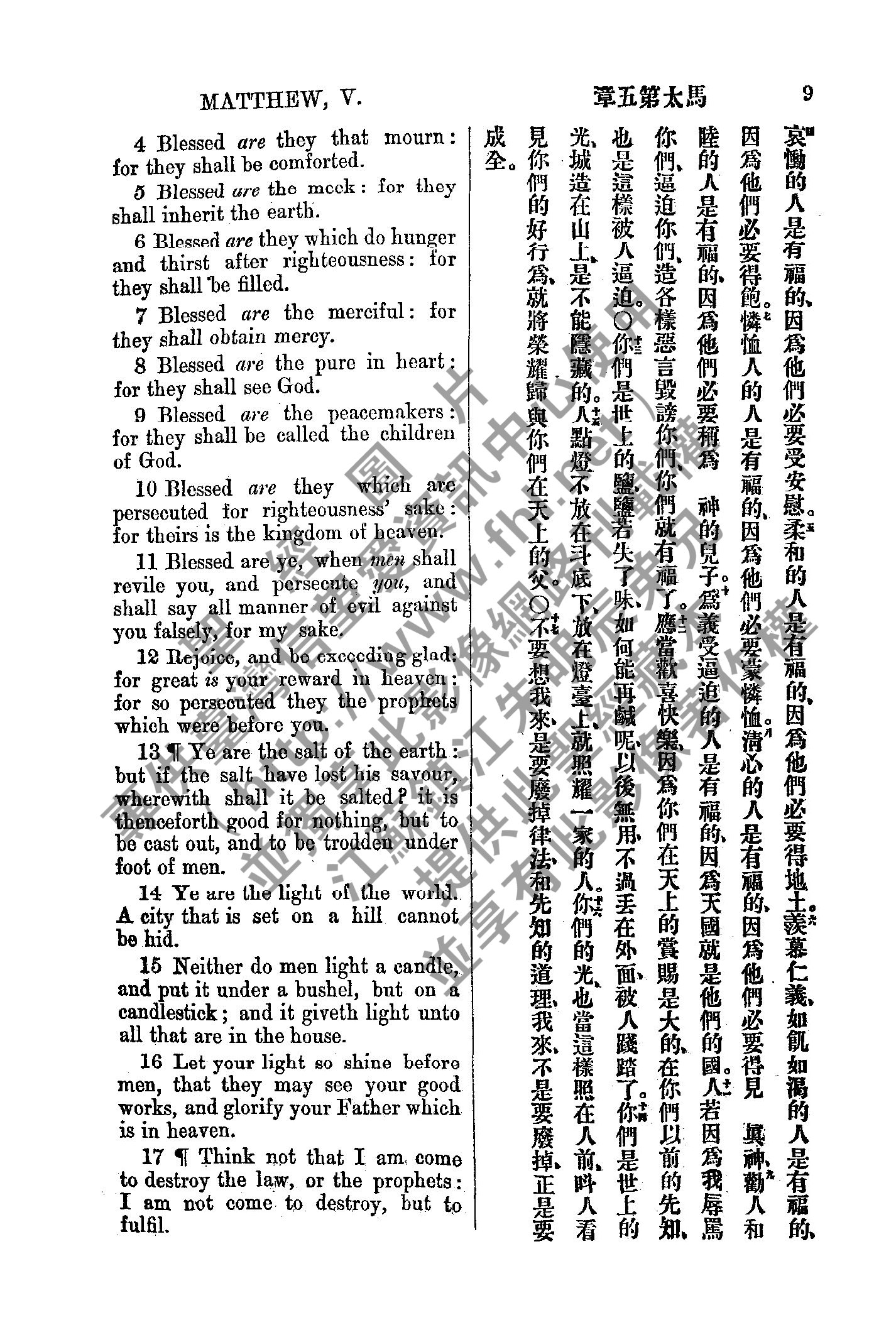 1885年新約全書 馬太福音 5 章 4 節到 5 章 17 節