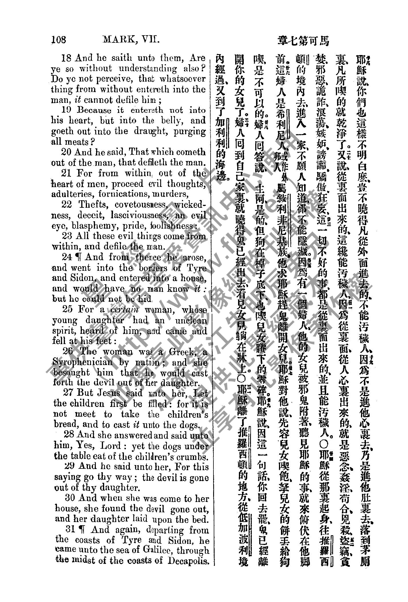 1885年新約全書 馬可福音 7 章 18 節到 7 章 31 節