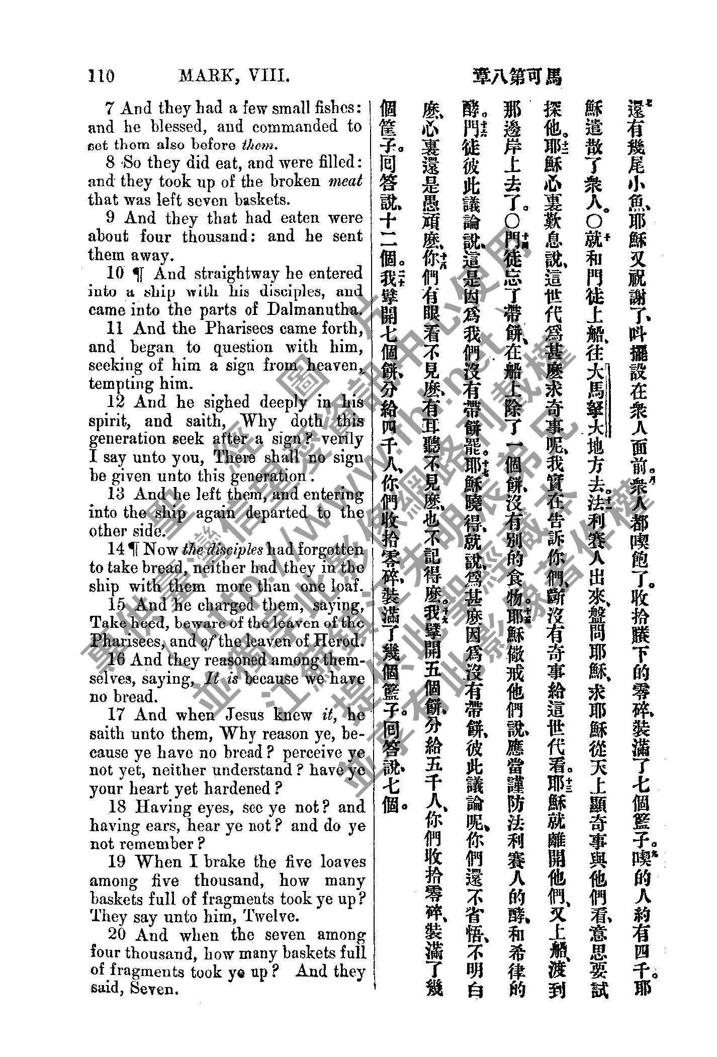 1885年新約全書 馬可福音 8 章 7 節到 8 章 20 節