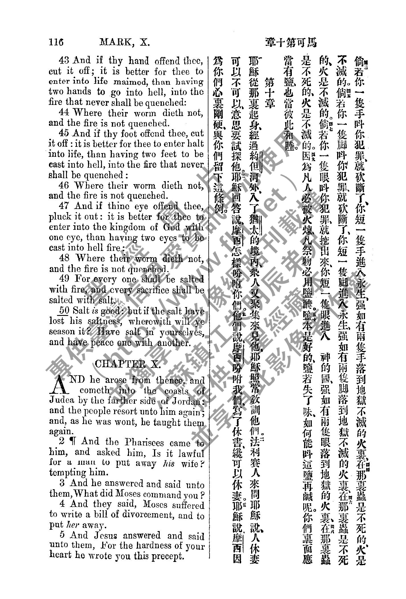 1885年新約全書 馬可福音 9 章 43 節到 10 章 5 節