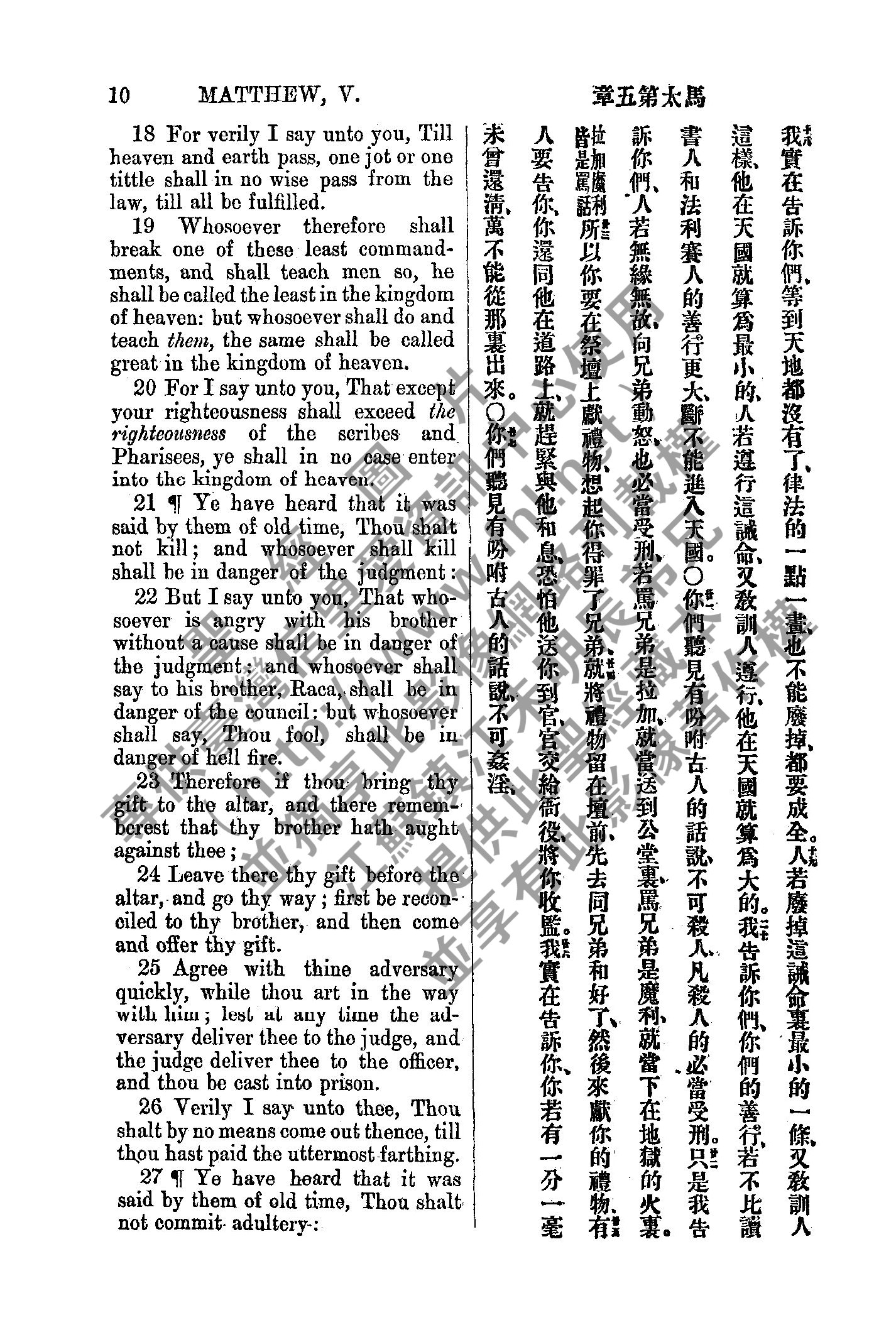 1885年新約全書 馬太福音 5 章 18 節到 5 章 27 節