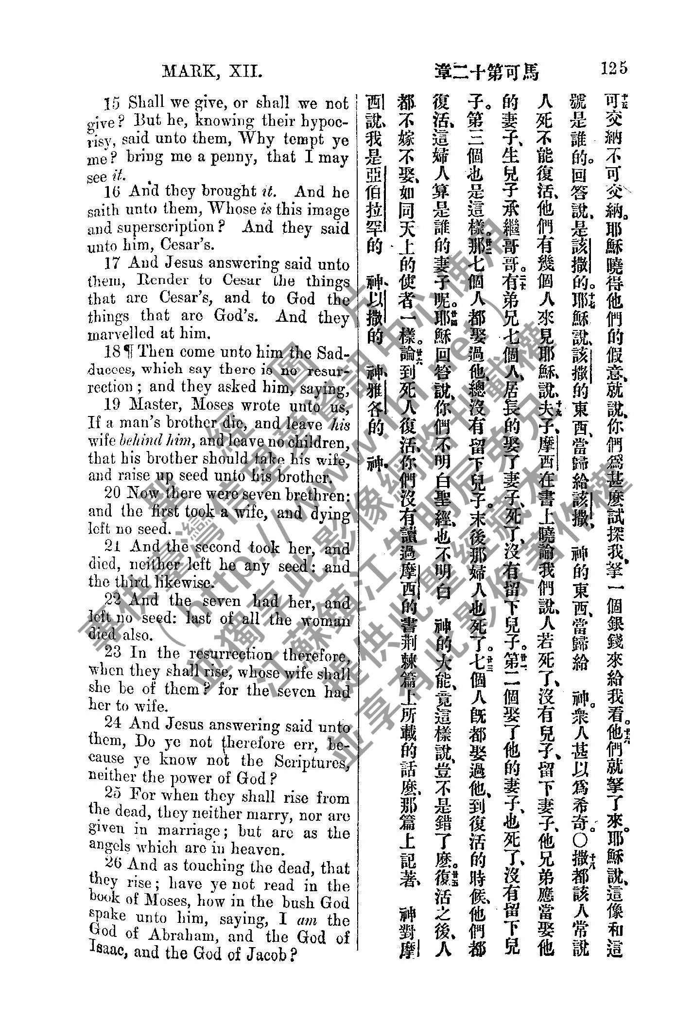 1885年新約全書 馬可福音 12 章 15 節到 12 章 26 節