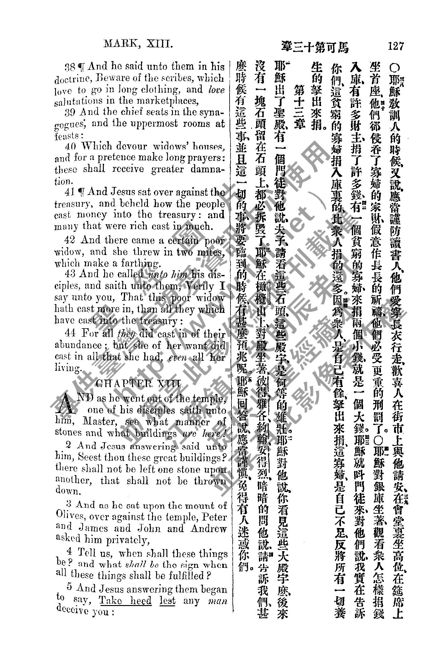 1885年新約全書 馬可福音 12 章 38 節到 13 章 4 節