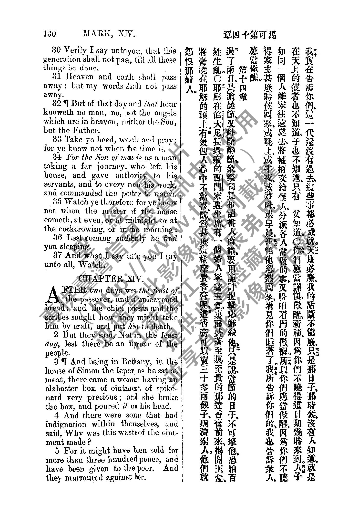 1885年新約全書 馬可福音 13 章 30 節到 14 章 5 節