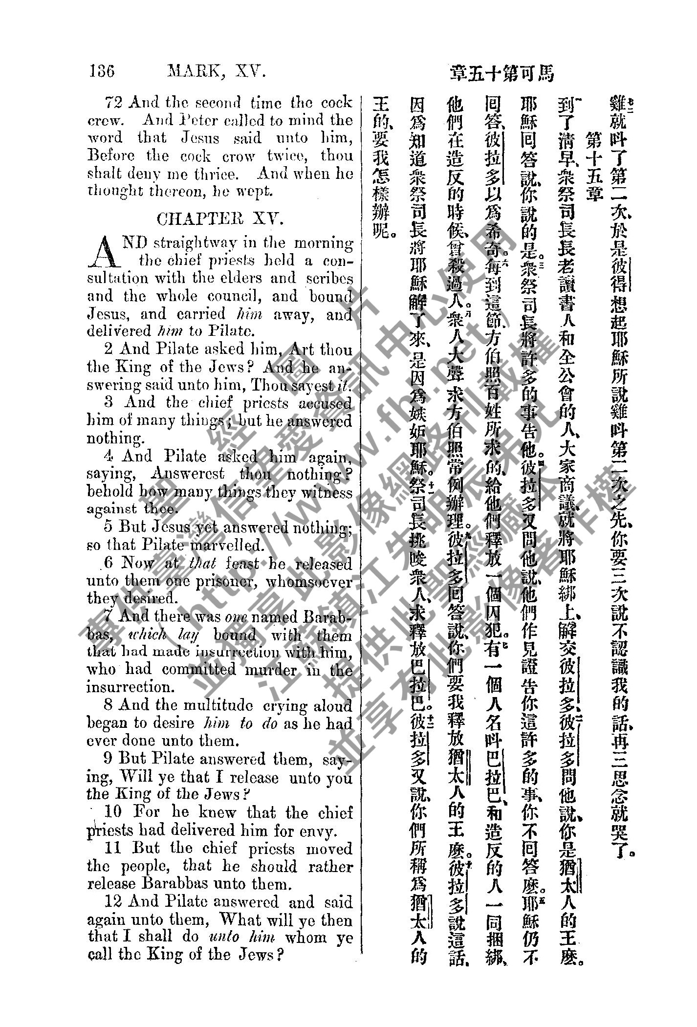 1885年新約全書 馬可福音 14 章 72 節到 15 章 12 節