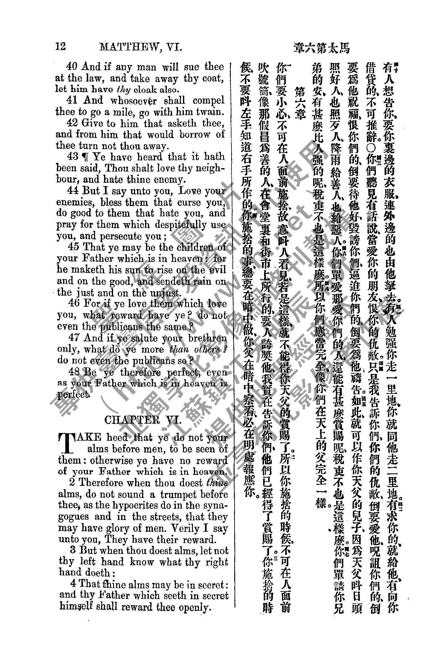 1885年新約全書 馬太福音 5 章 40 節到 6 章 4 節
