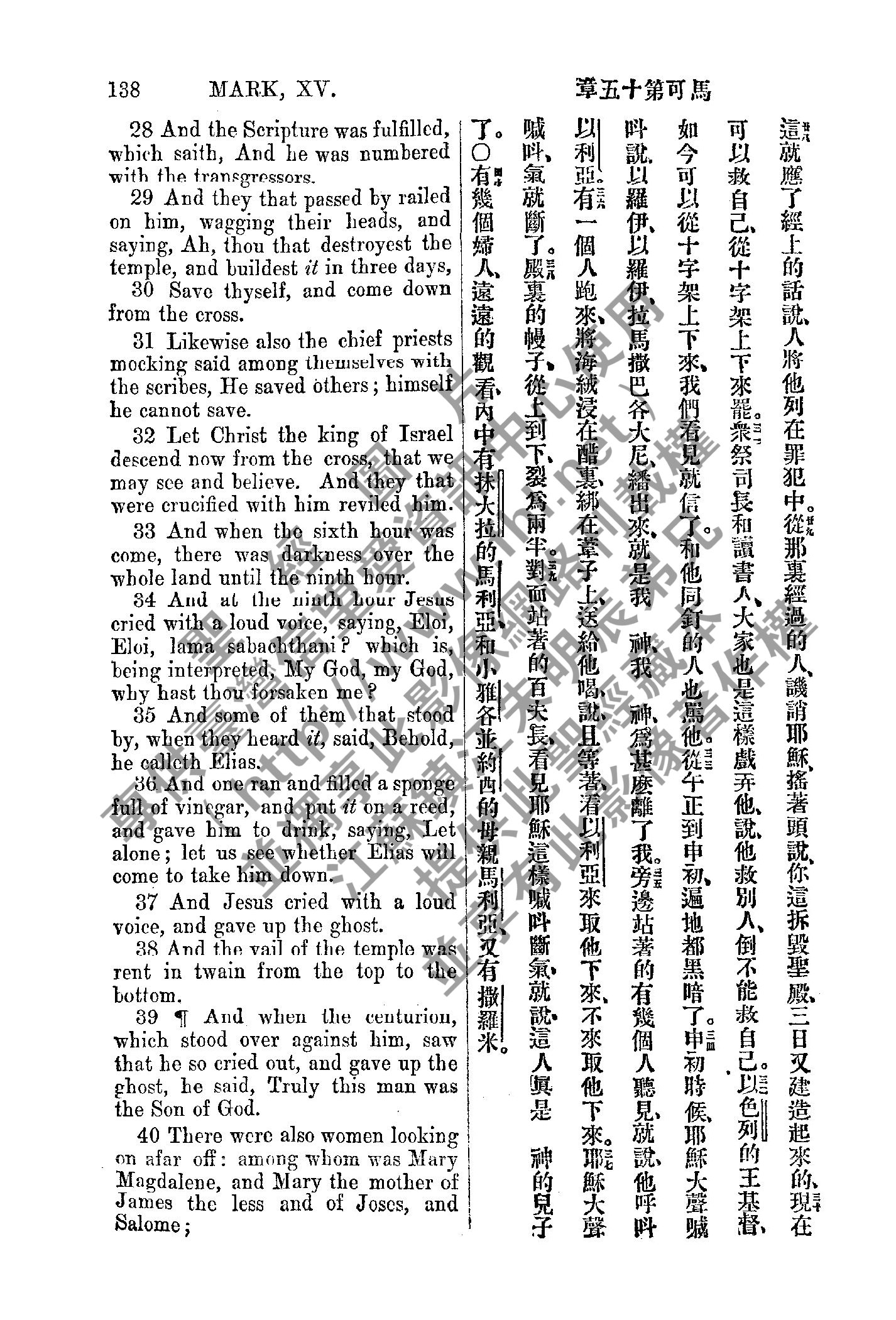 1885年新約全書 馬可福音 15 章 28 節到 15 章 40 節