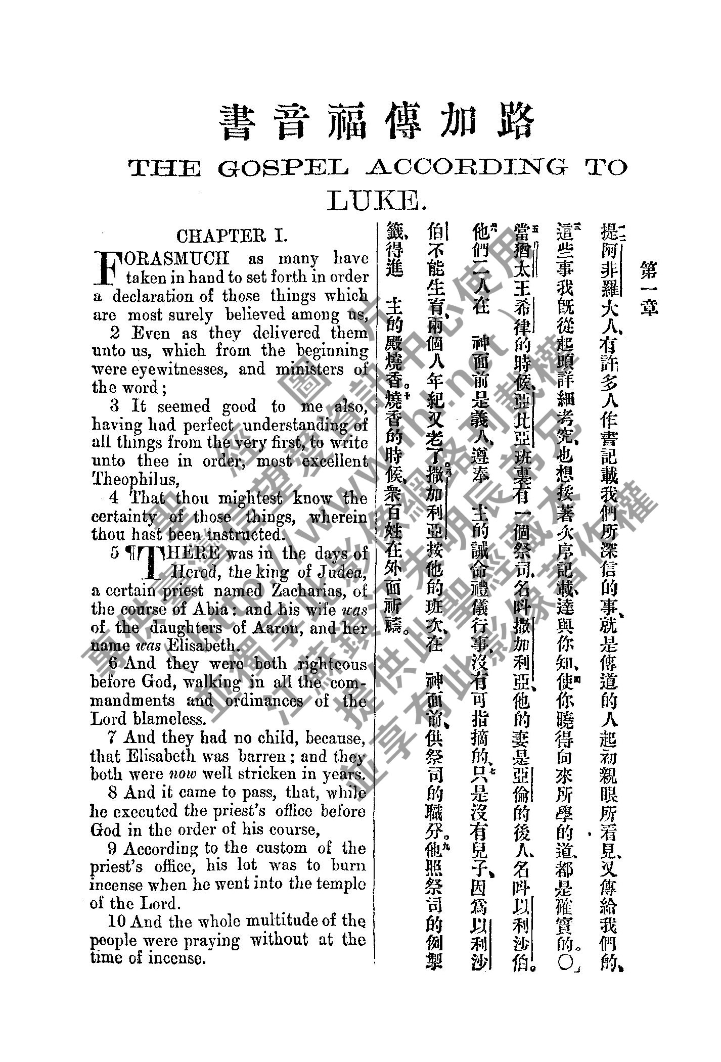 1885年新約全書 路加福音 1 章 1 節到 1 章 10 節
