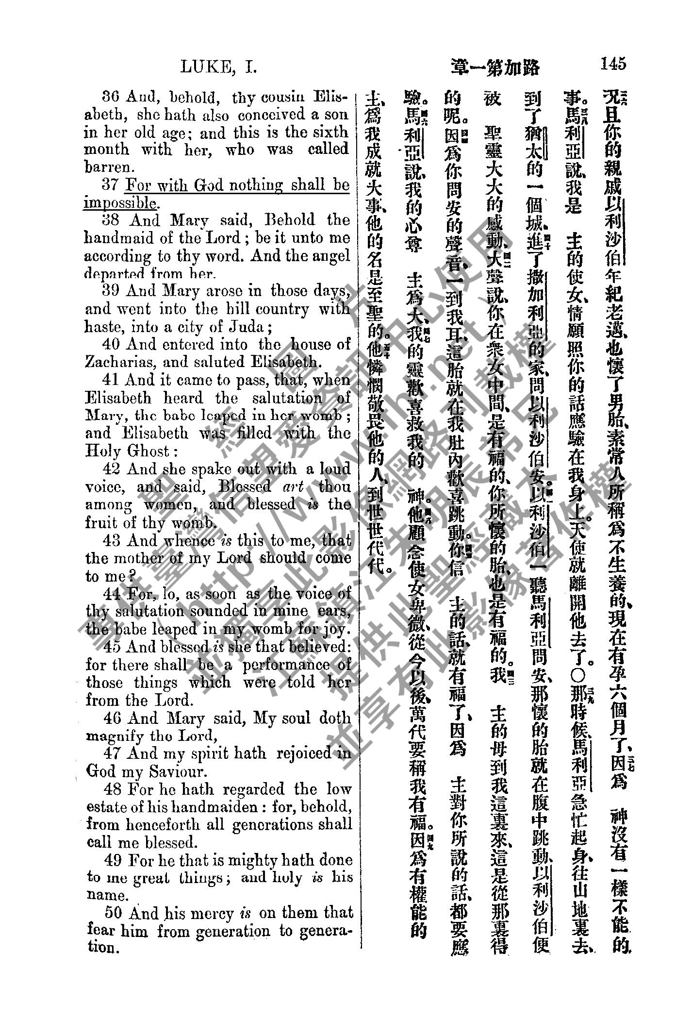 1885年新約全書 路加福音 1 章 36 節到 1 章 50 節