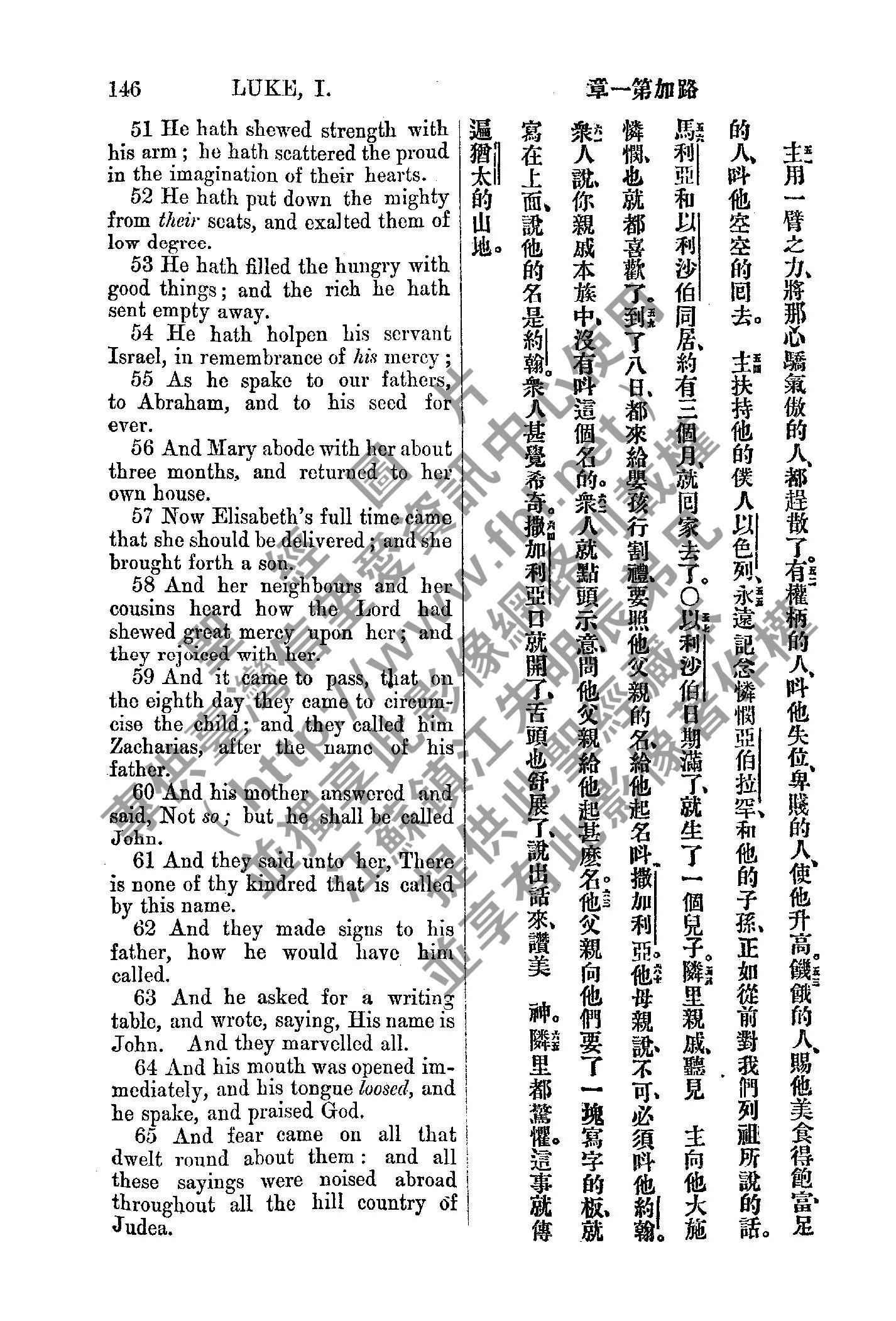 1885年新約全書 路加福音 1 章 51 節到 1 章 65 節