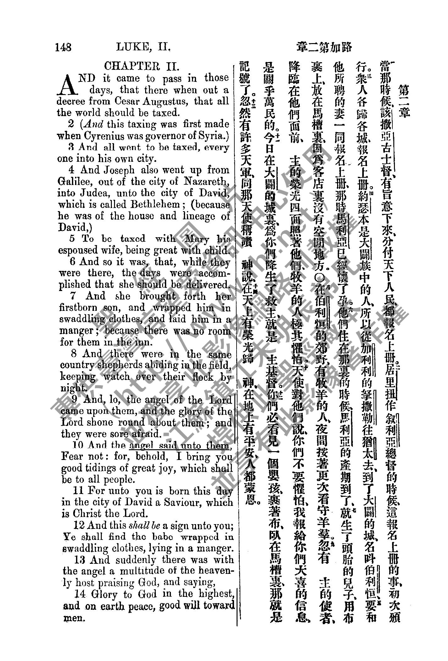 1885年新約全書 路加福音 2 章 1 節到 2 章 14 節