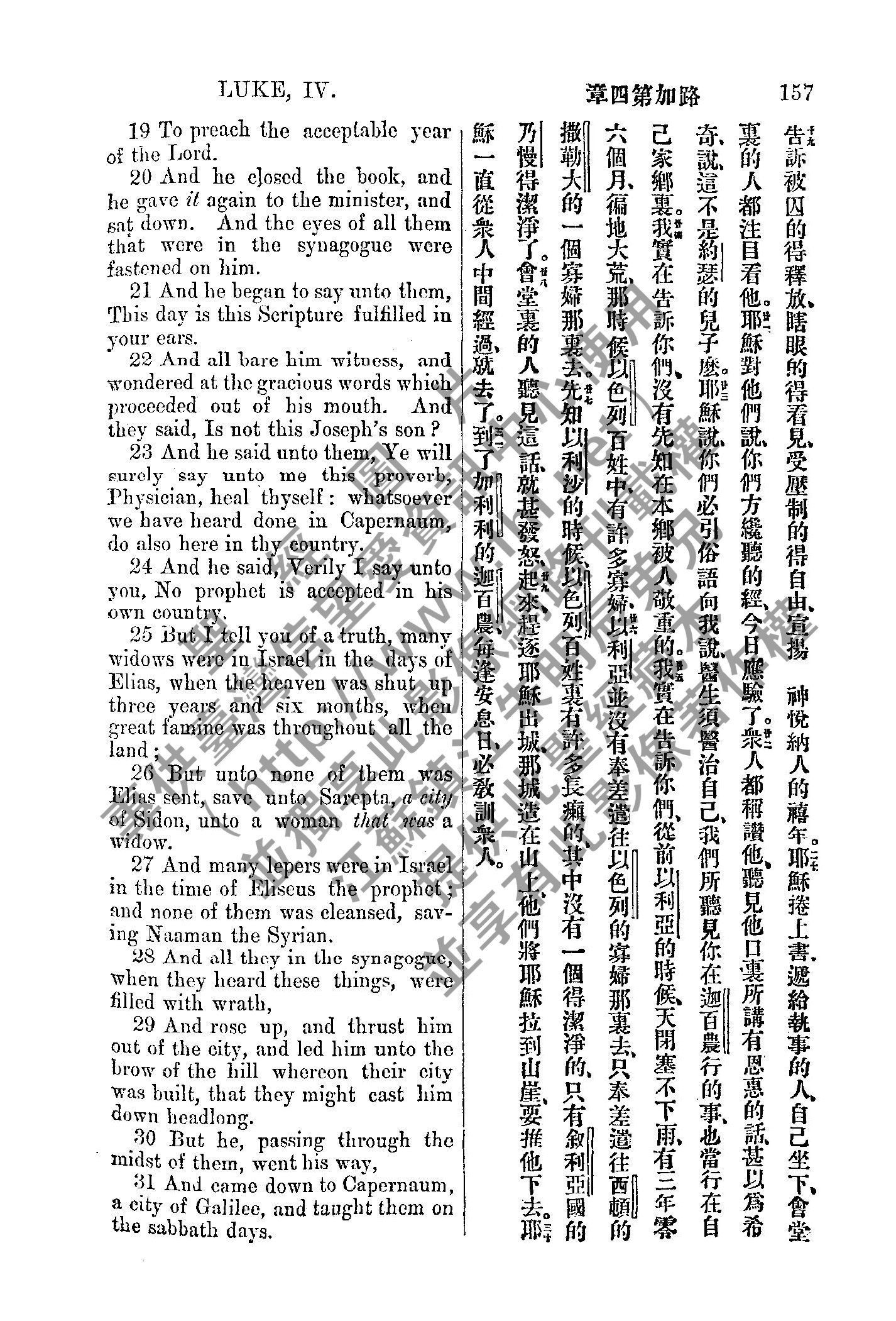 1885年新約全書 路加福音 4 章 19 節到 4 章 31 節