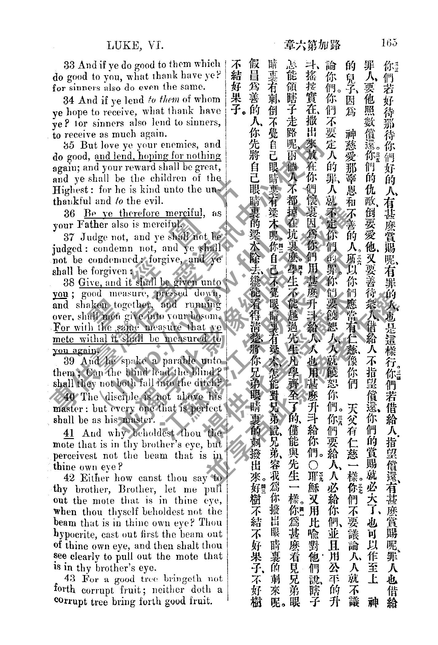 1885年新約全書 路加福音 6 章 33 節到 6 章 43 節