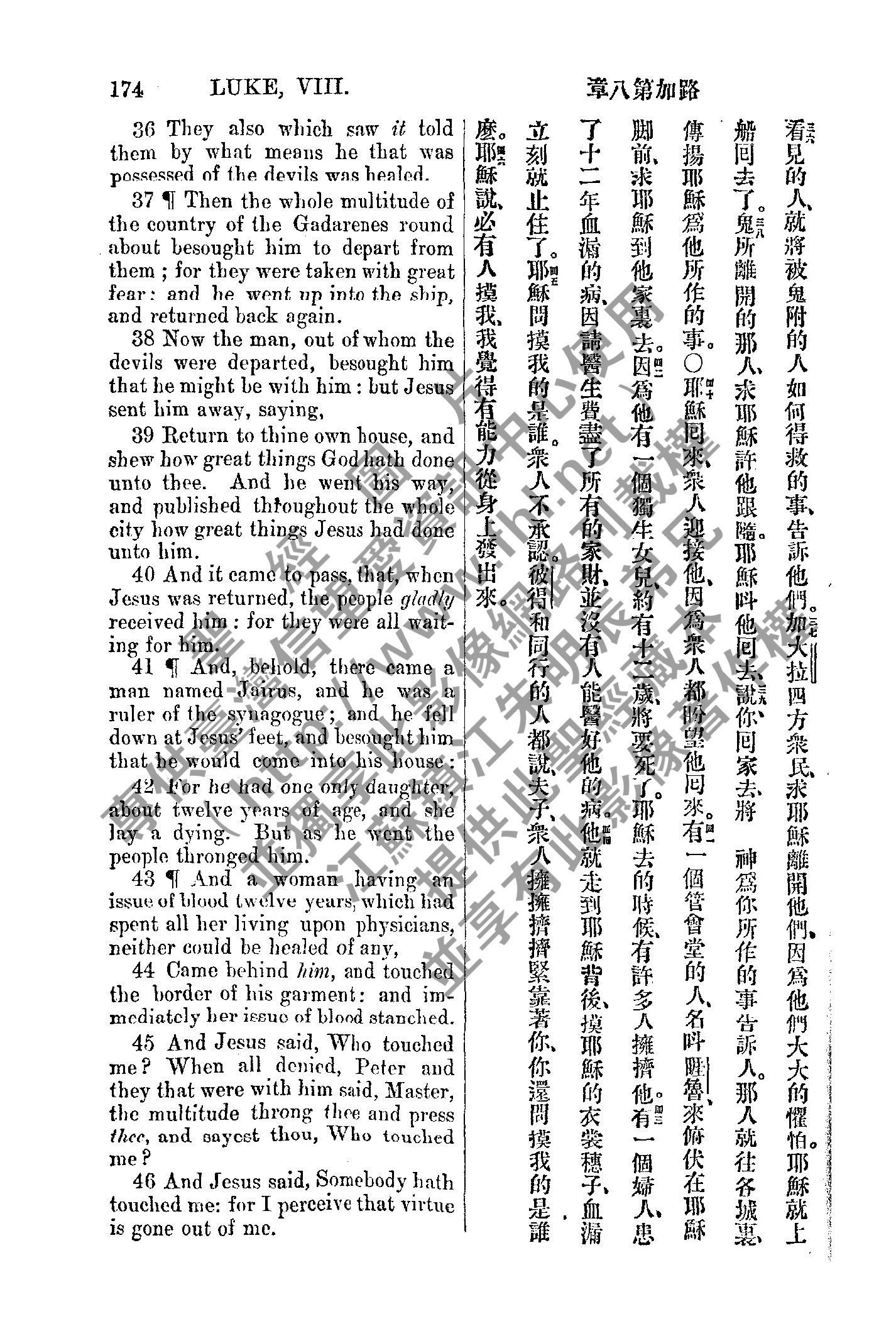 1885年新約全書 路加福音 8 章 36 節到 8 章 46 節