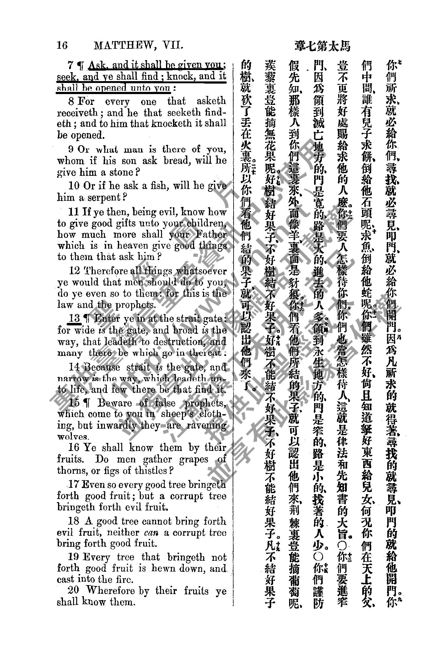 1885年新約全書 馬太福音 7 章 7 節到 7 章 27 節
