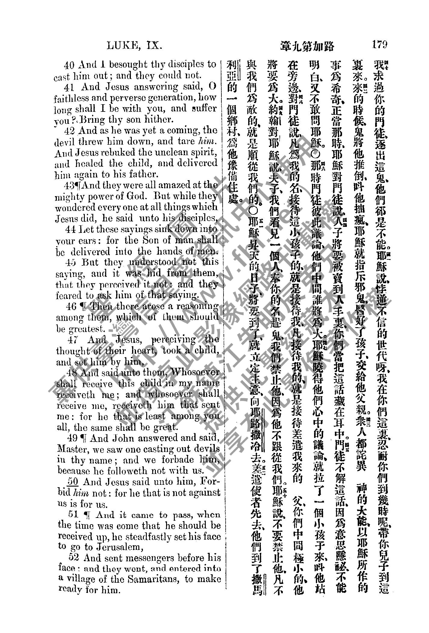 1885年新約全書 路加福音 9 章 40 節到 9 章 52 節