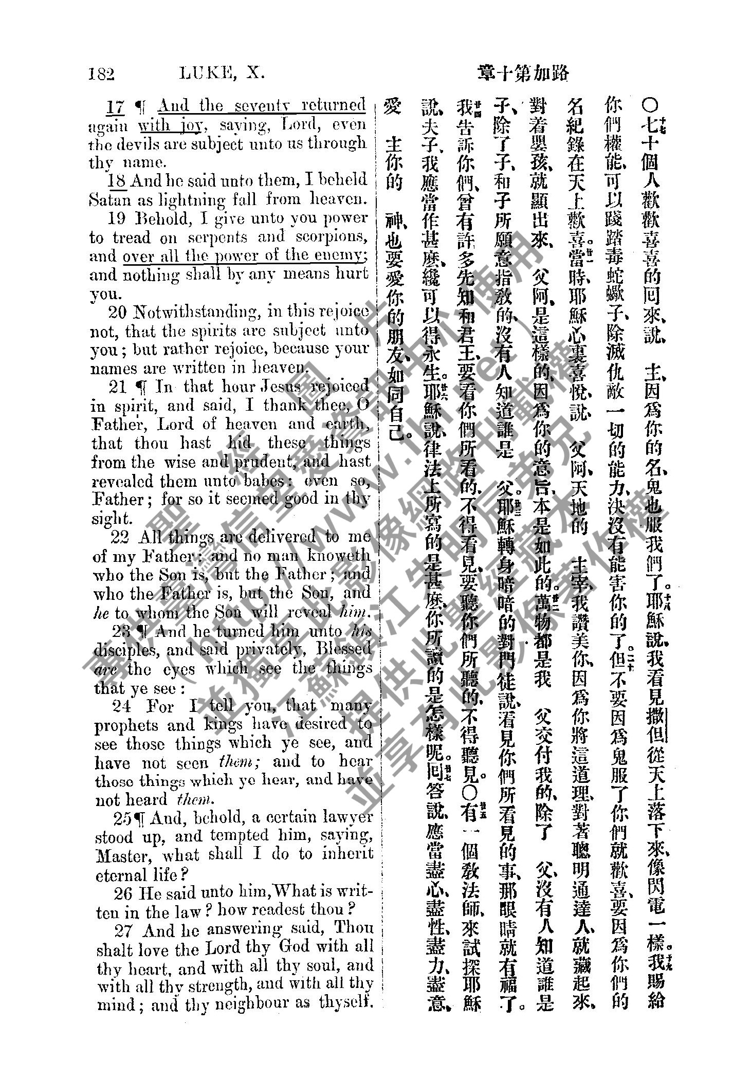 1885年新約全書 路加福音 10 章 17 節到 10 章 27 節