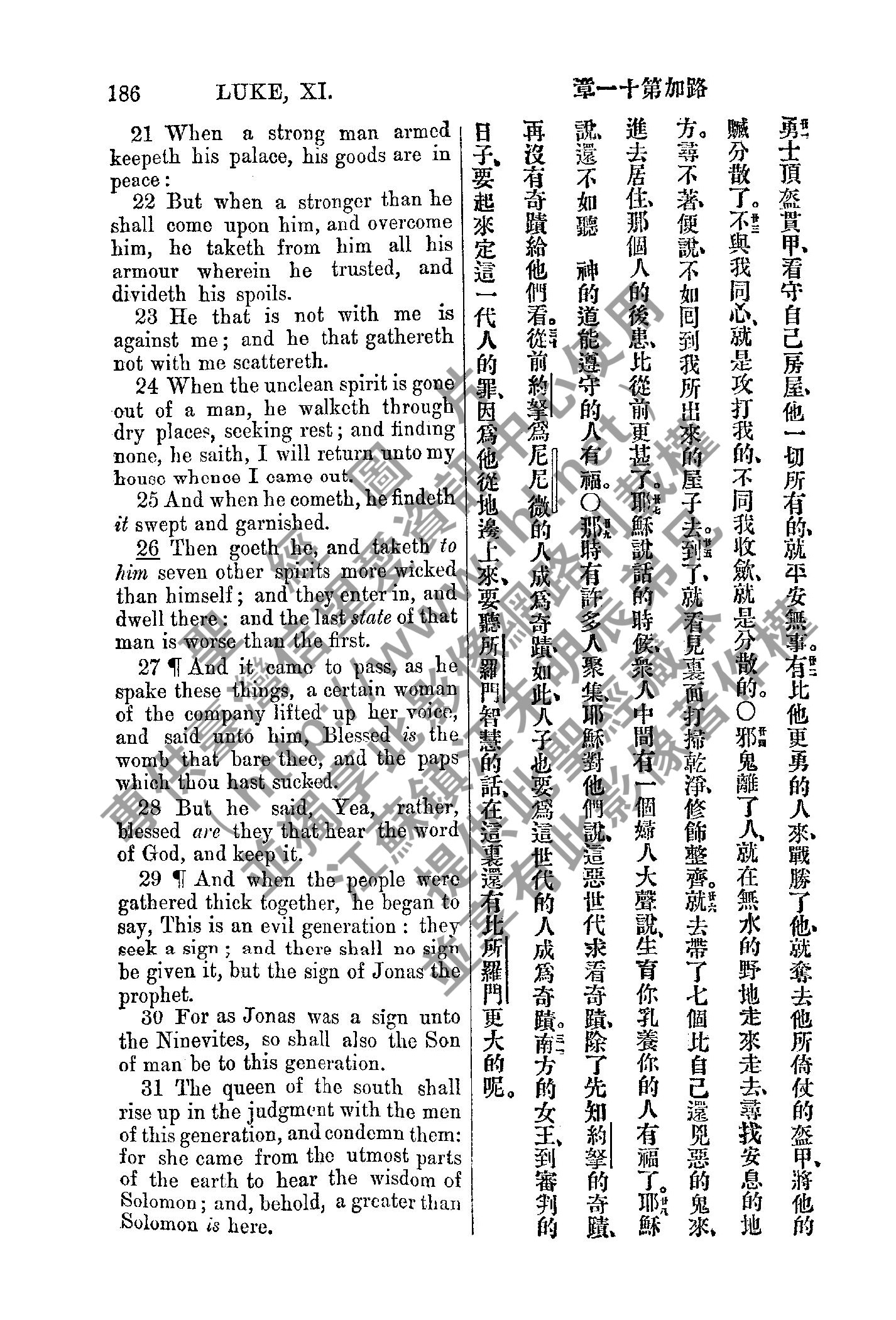 1885年新約全書 路加福音 11 章 21 節到 11 章 31 節