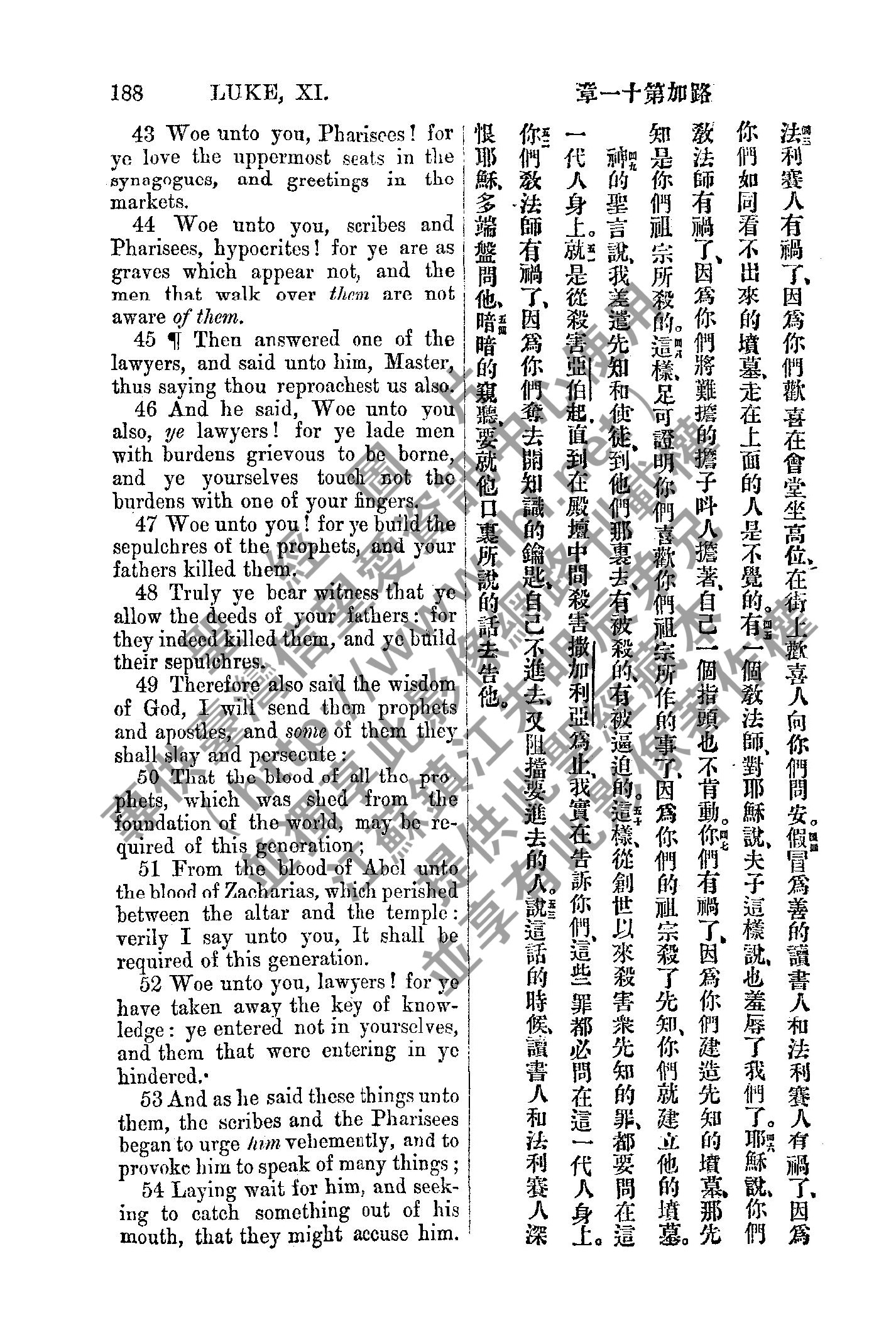 1885年新約全書 路加福音 11 章 43 節到 11 章 54 節