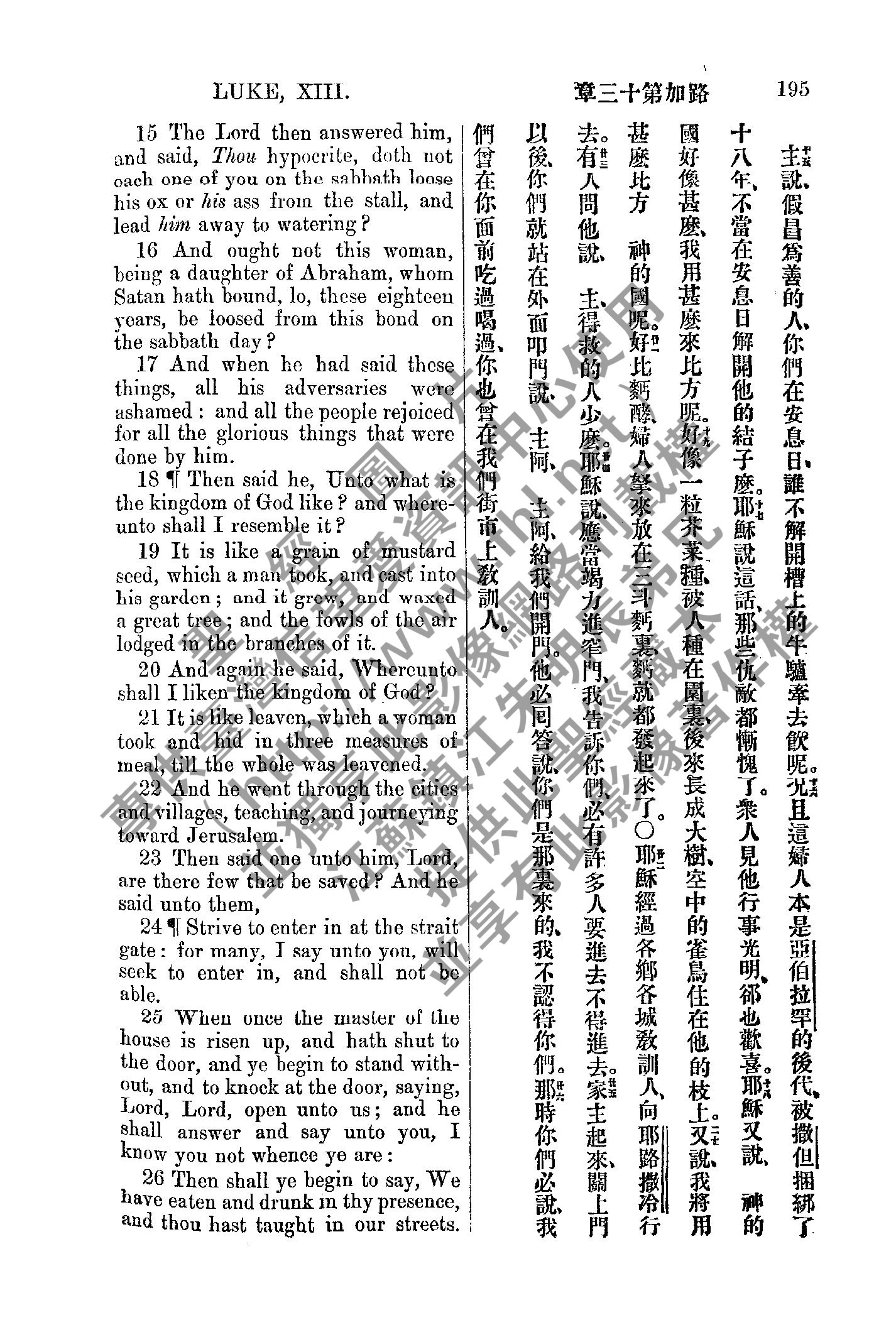 1885年新約全書 路加福音 13 章 15 節到 13 章 26 節