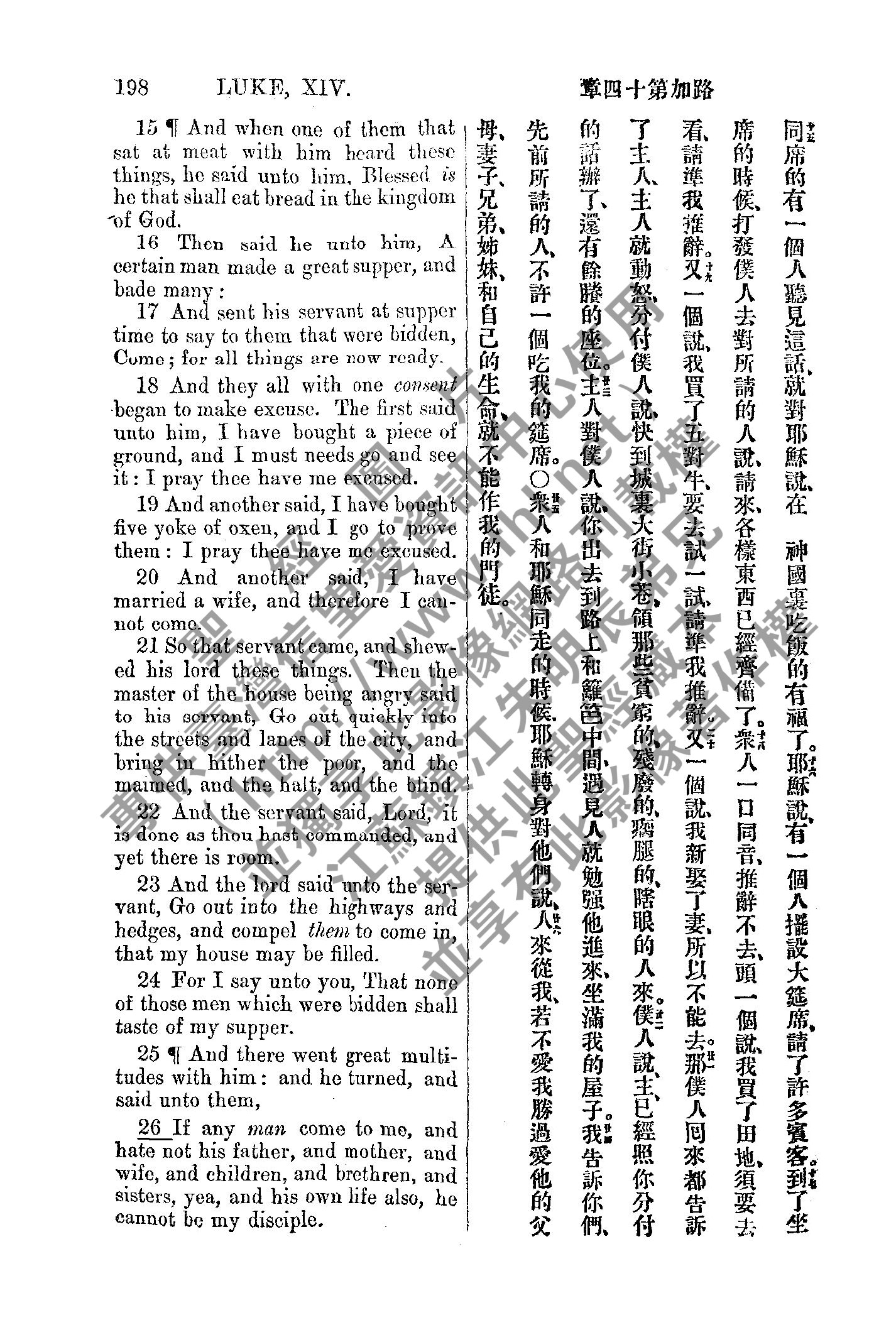 1885年新約全書 路加福音 14 章 15 節到 14 章 26 節