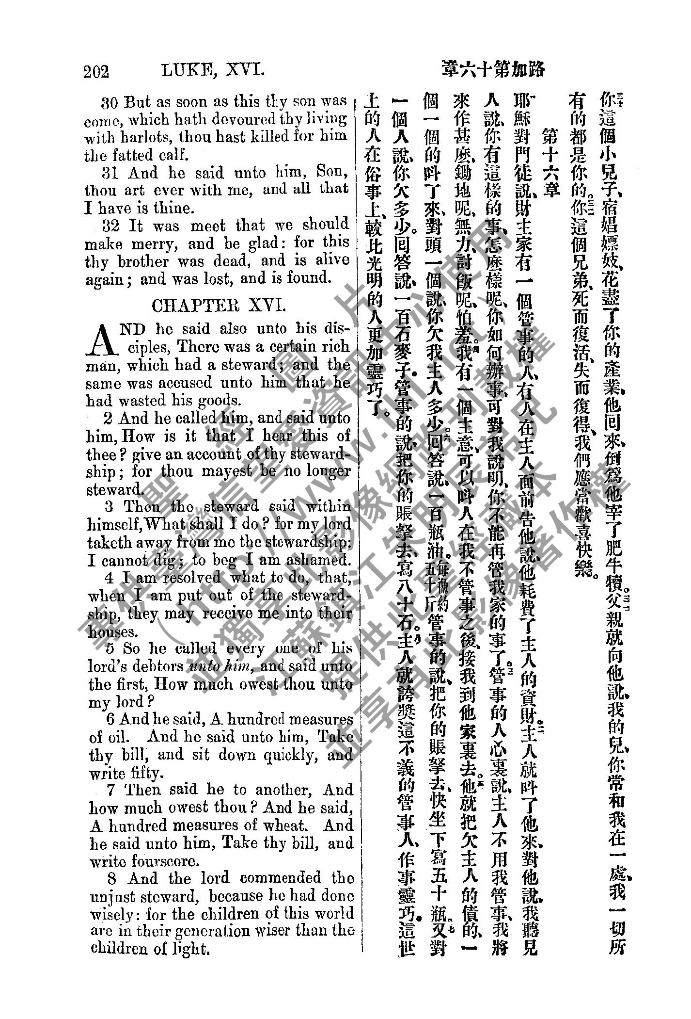 1885年新約全書 路加福音 15 章 30 節到 16 章 8 節
