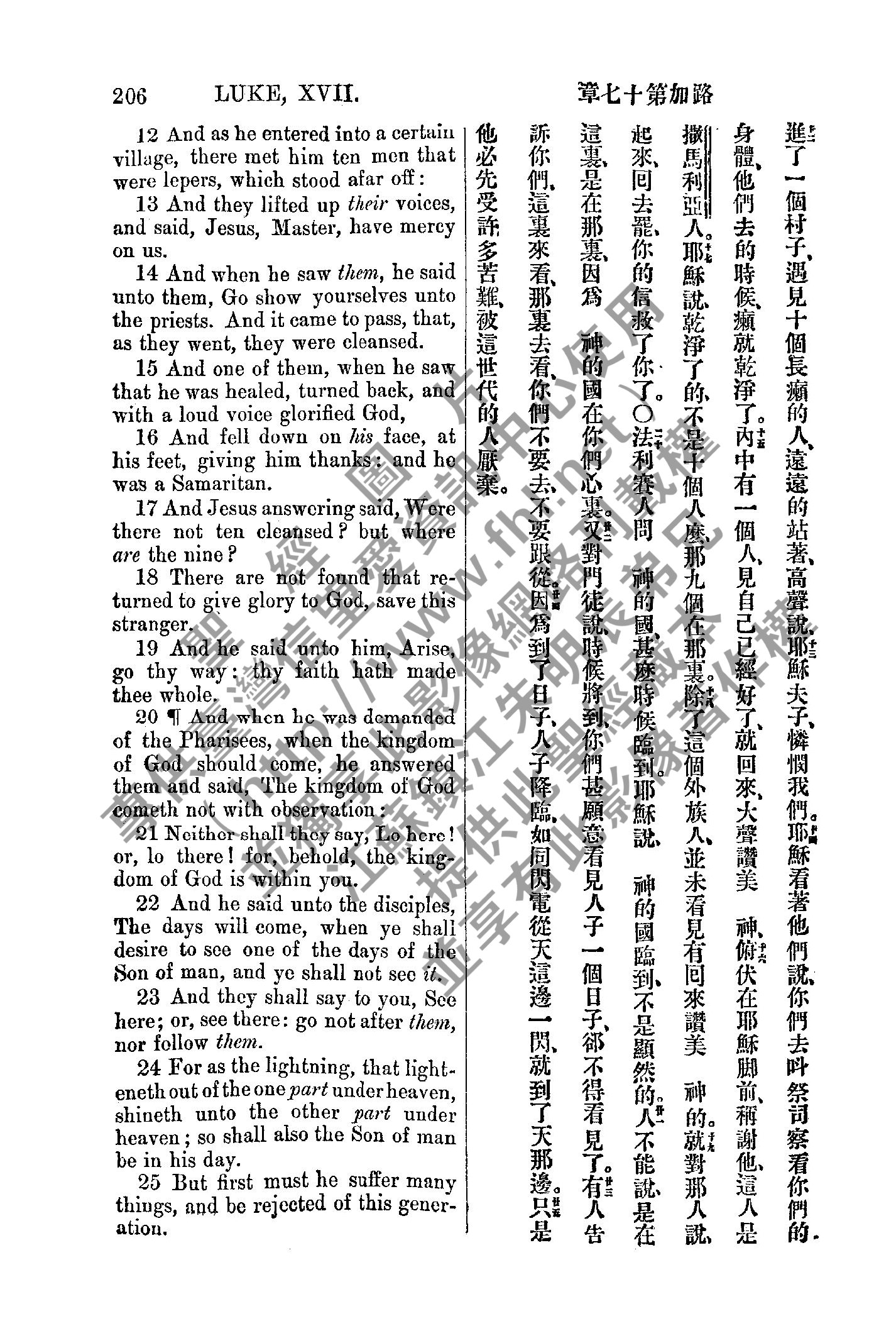 1885年新約全書 路加福音 17 章 12 節到 17 章 25 節
