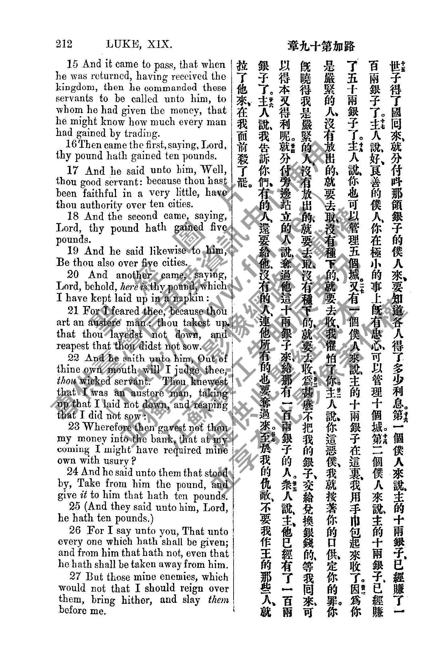 1885年新約全書 路加福音 19 章 15 節到 19 章 27 節