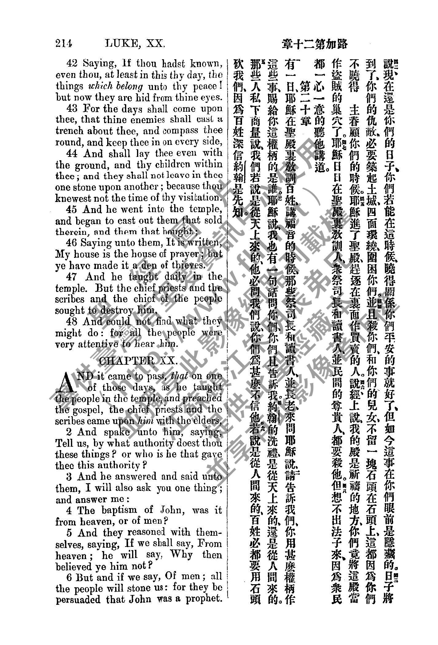 1885年新約全書 路加福音 19 章 42 節到 20 章 6 節