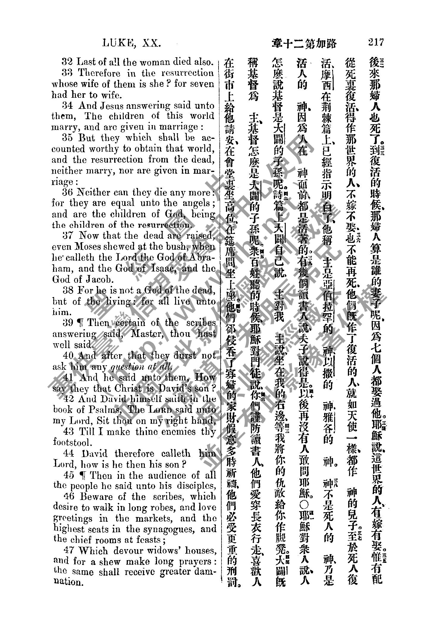 1885年新約全書 路加福音 20 章 31 節到 20 章 47 節