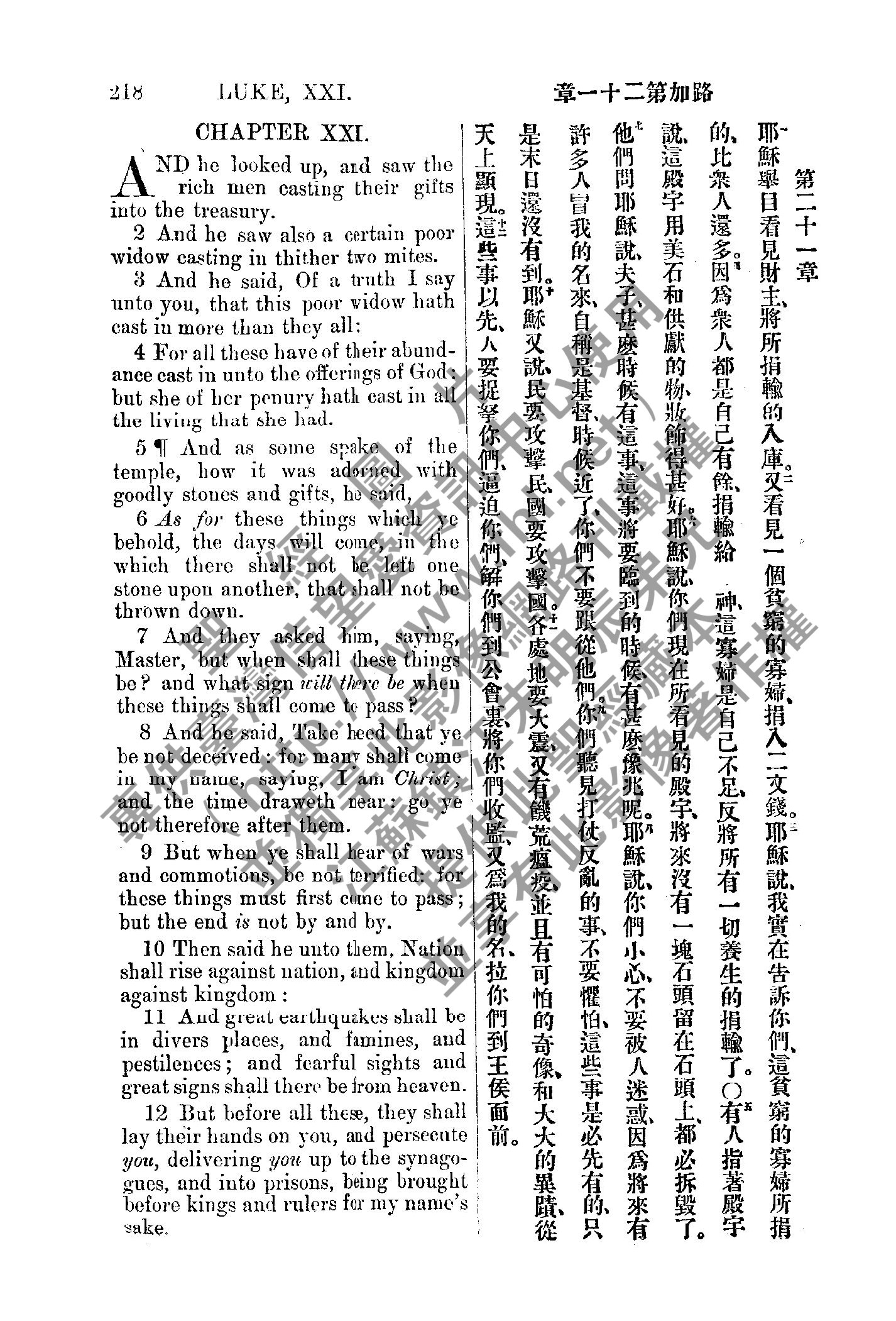 1885年新約全書 路加福音 21 章 1 節到 21 章 12 節