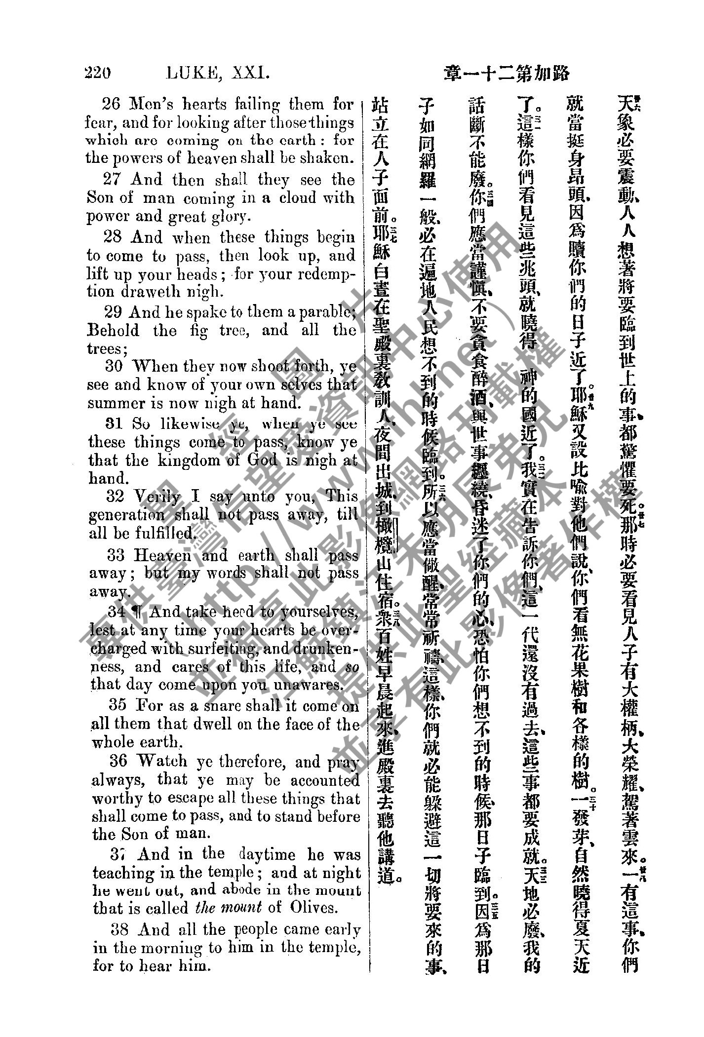 1885年新約全書 路加福音 21 章 26 節到 21 章 38 節