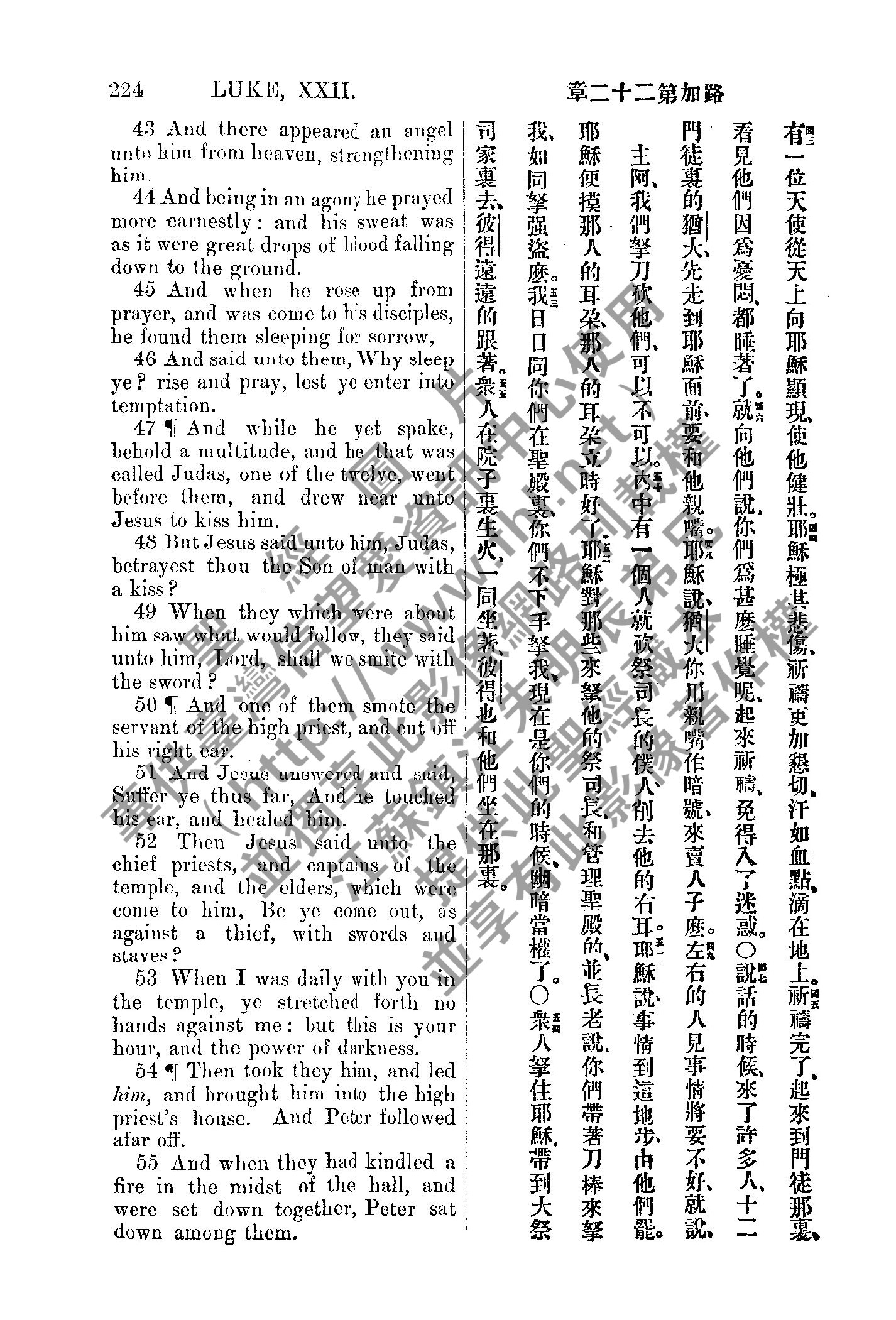 1885年新約全書 路加福音 22 章 43 節到 22 章 55 節