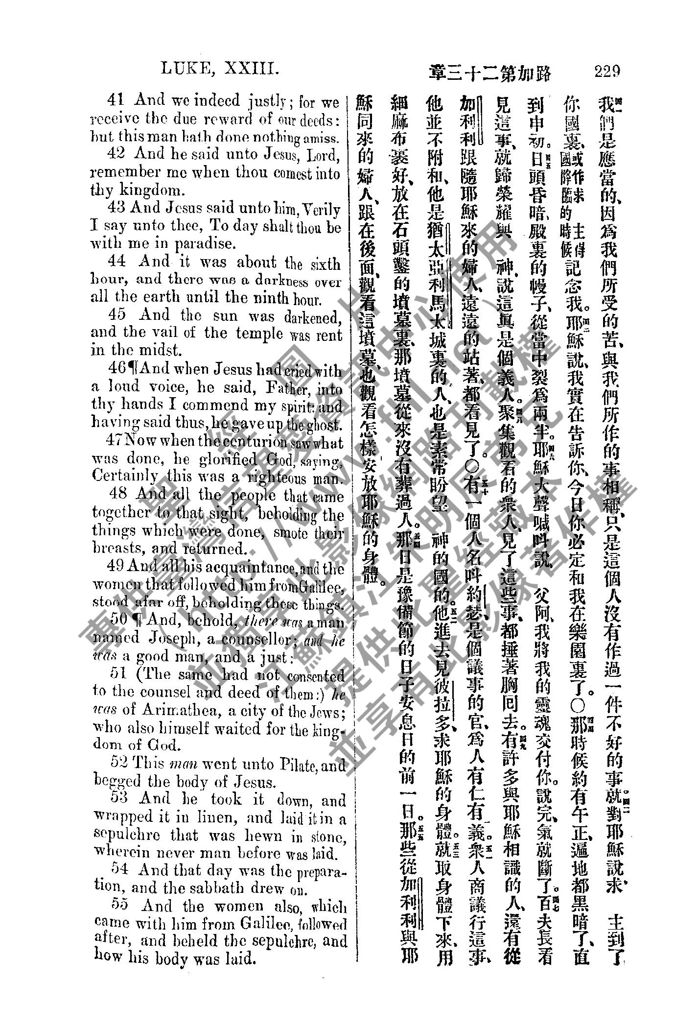 1885年新約全書 路加福音 23 章 41 節到 23 章 55 節