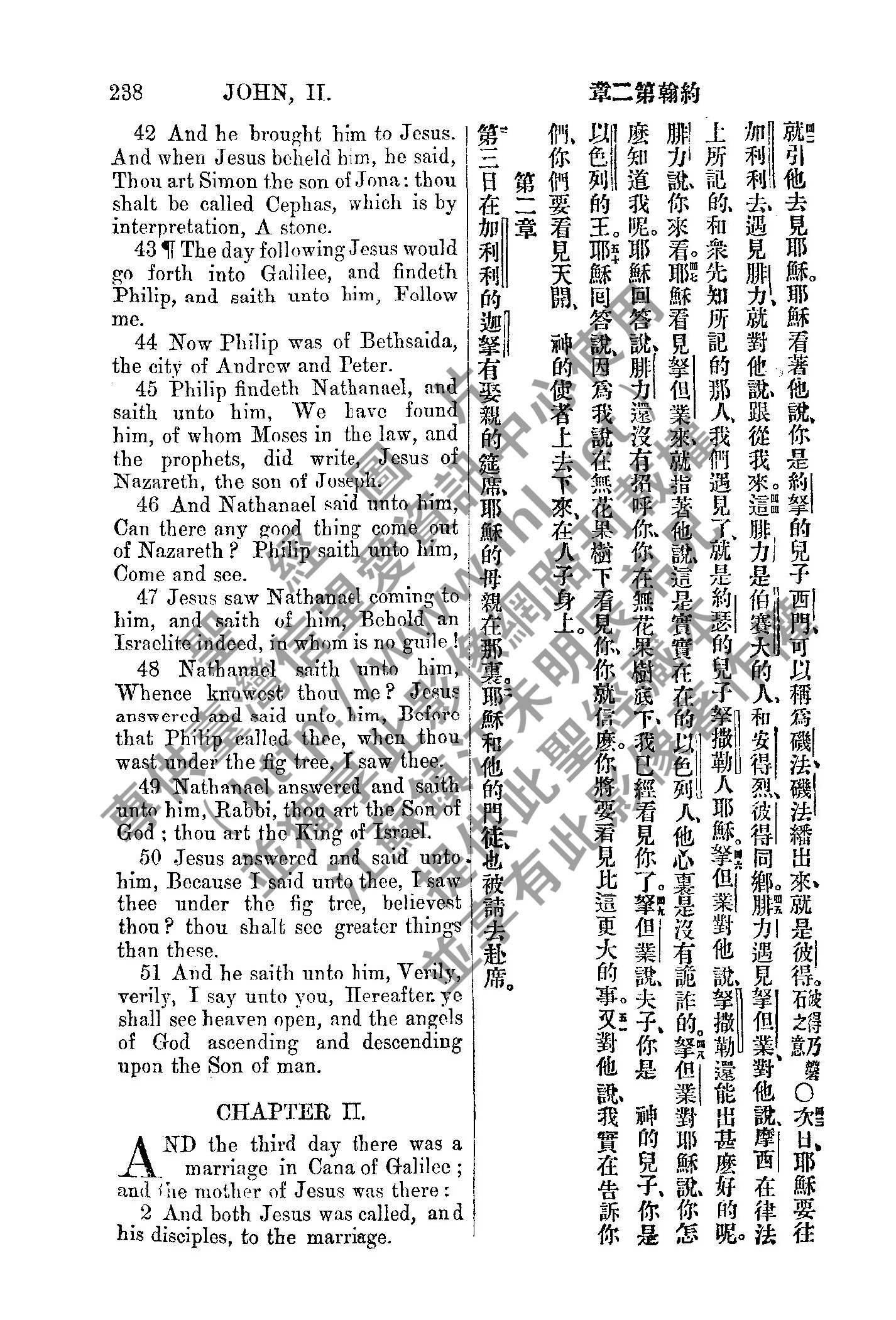 1885年新約全書 約翰福音 1 章 42 節到 2 章 2 節