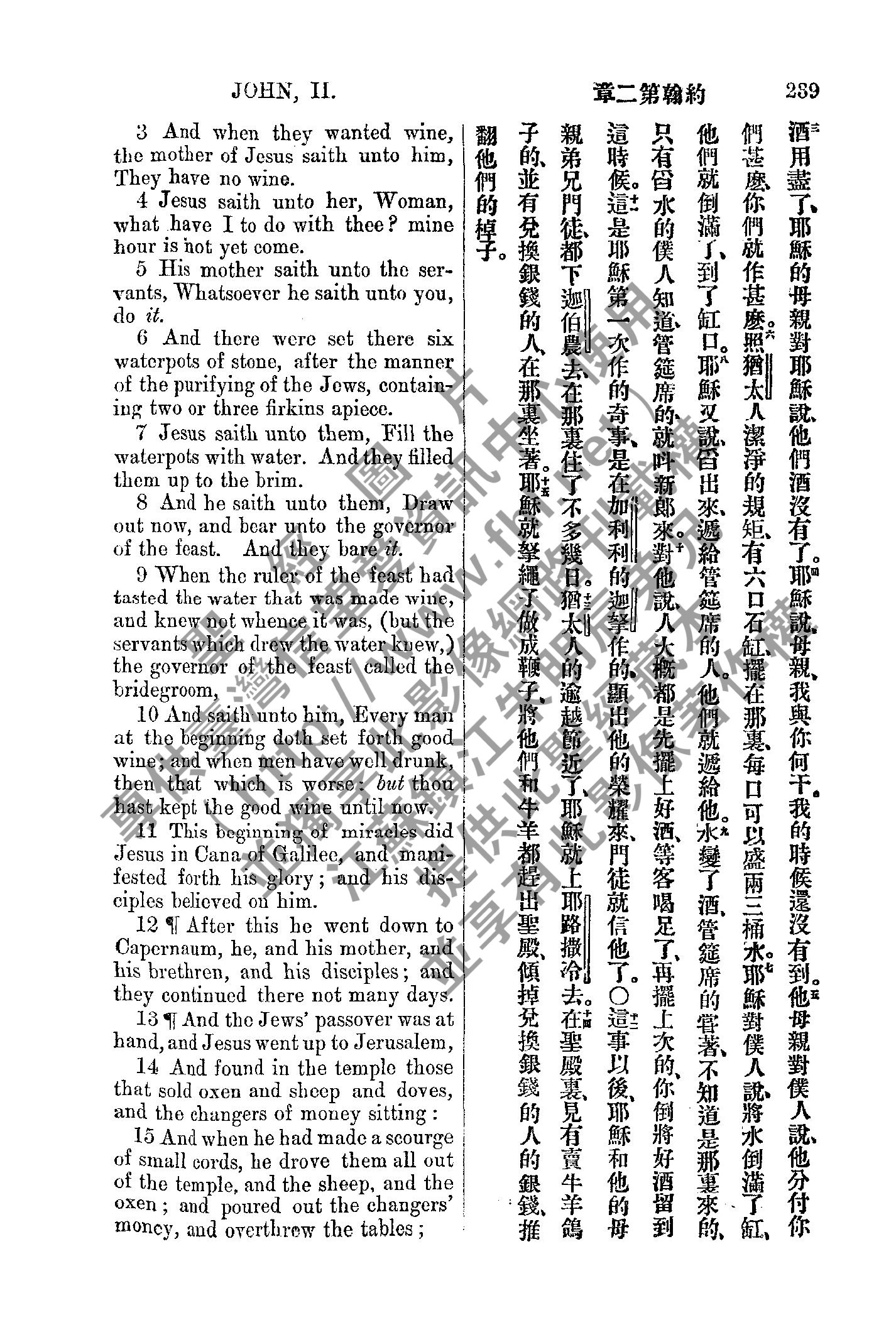 1885年新約全書 約翰福音 2 章 3 節到 2 章 15 節