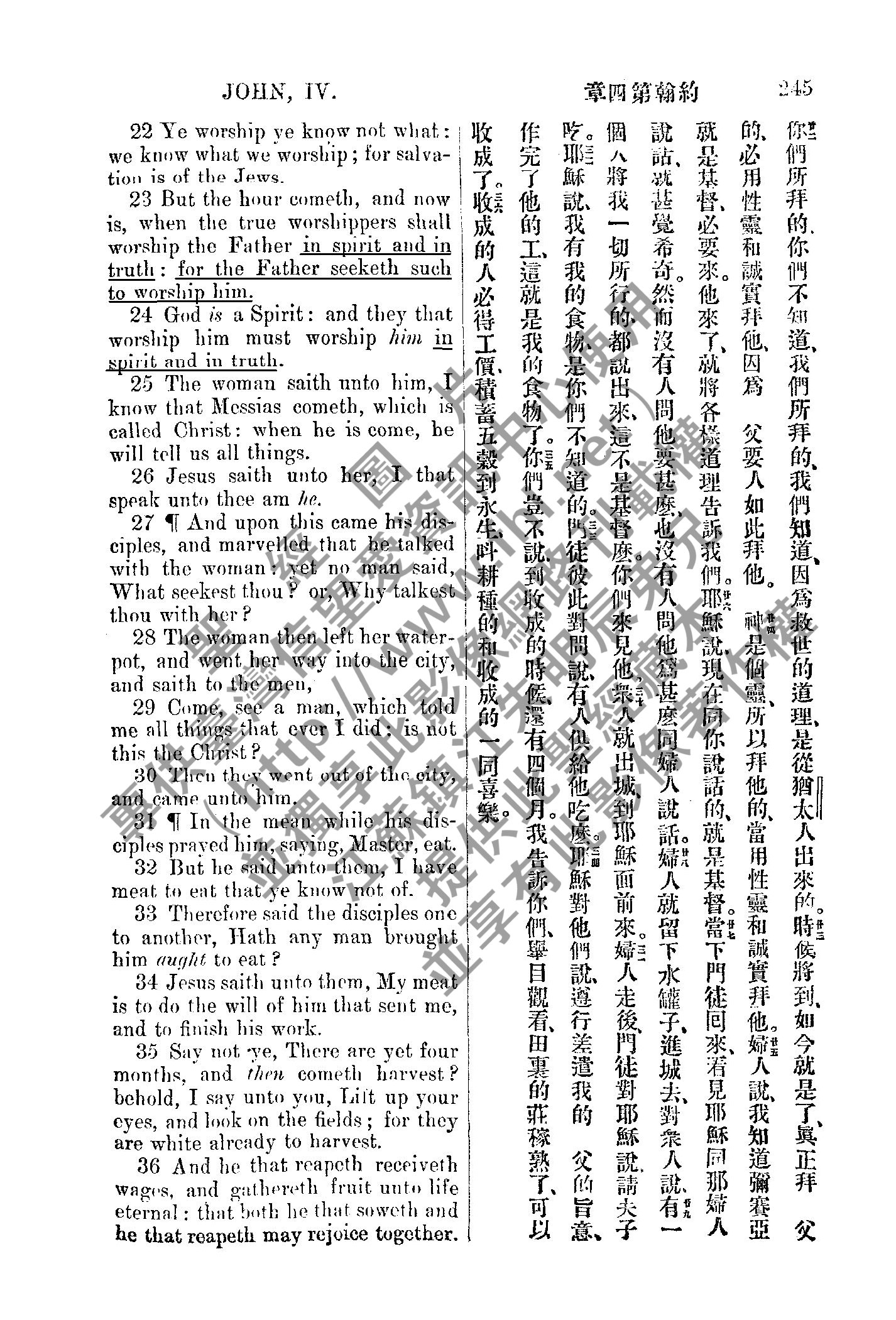 1885年新約全書 約翰福音 4 章 22 節到 4 章 36 節