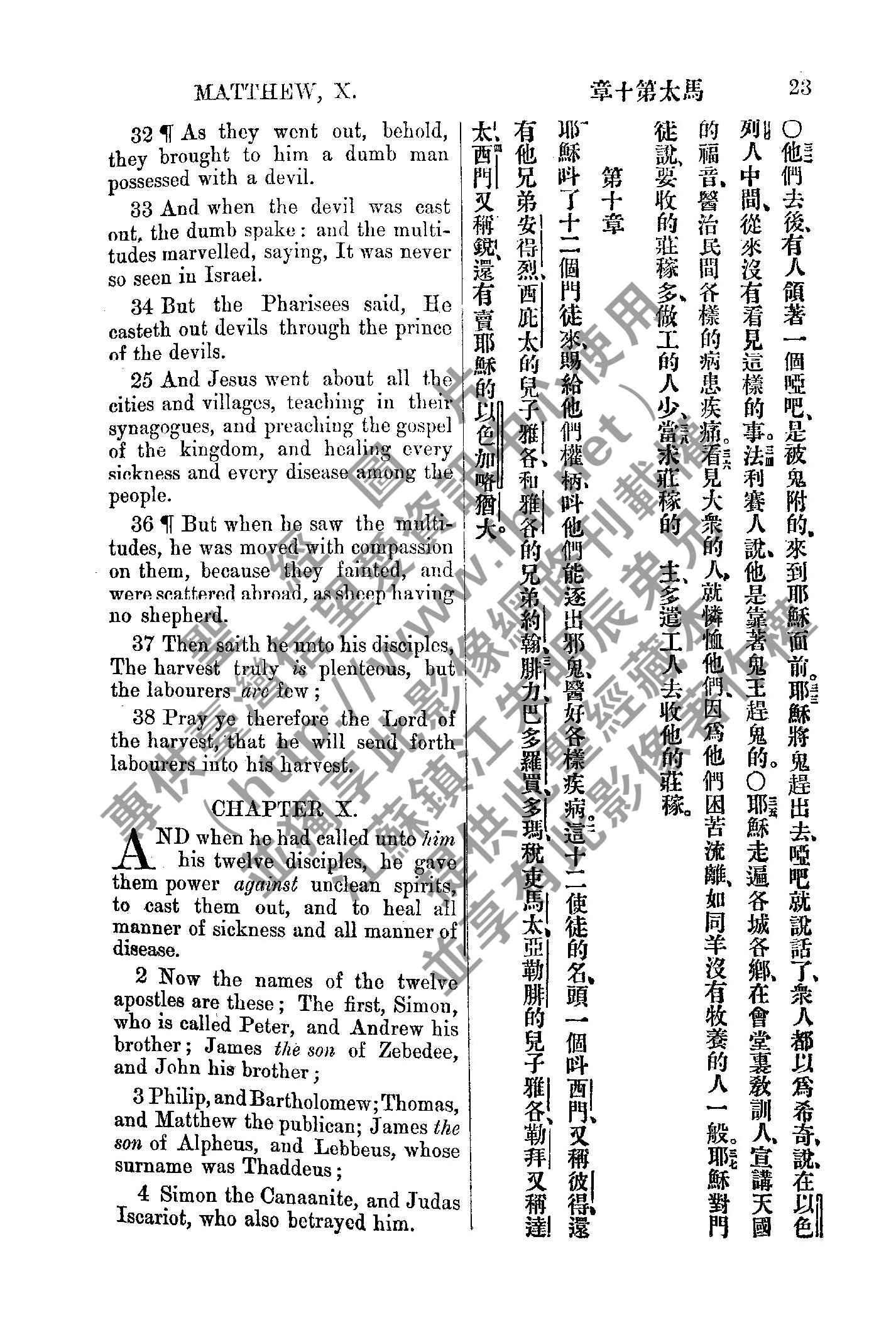 1885年新約全書 馬太福音 9 章 32 節到 10 章 4 節