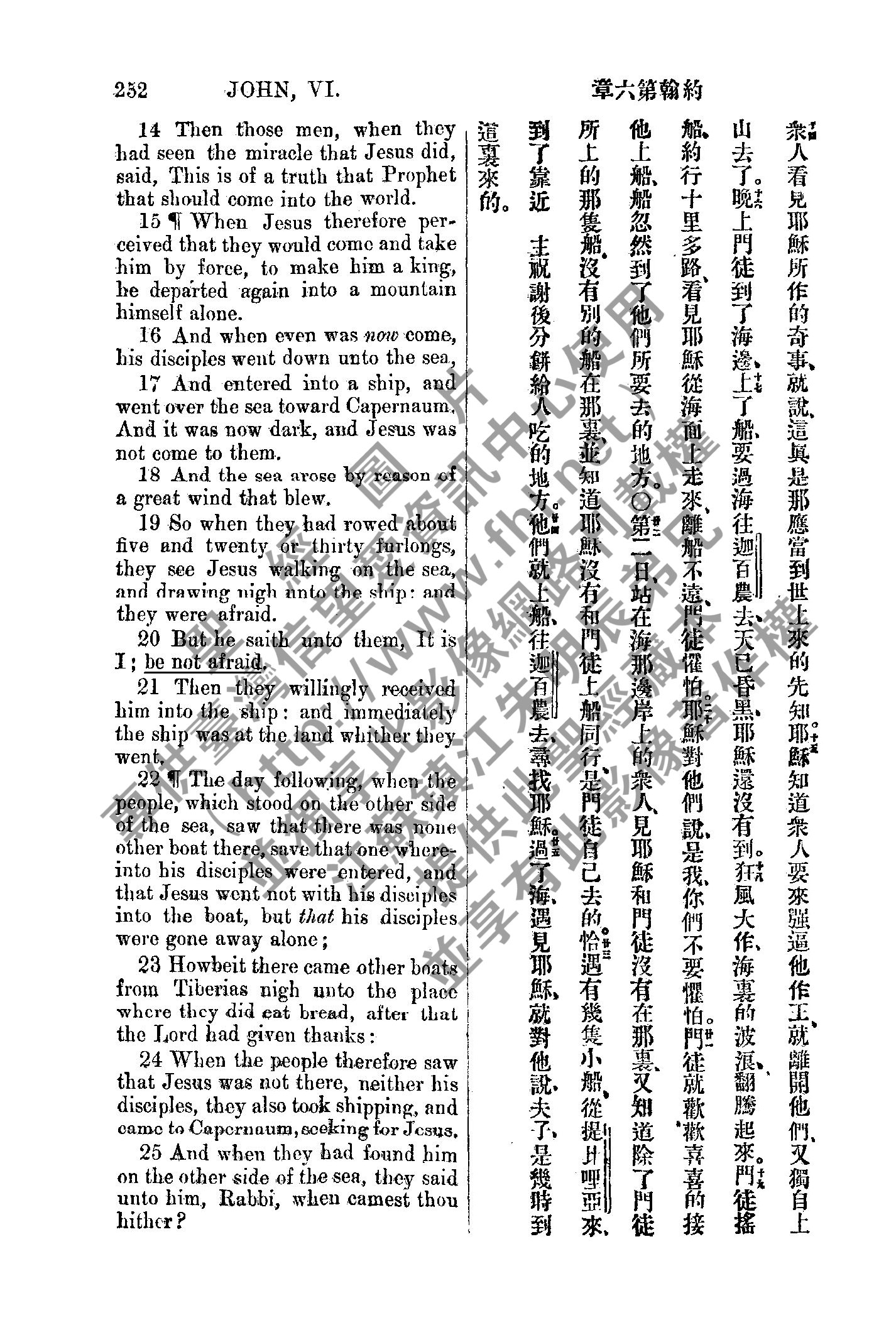 1885年新約全書 約翰福音 6 章 14 節到 6 章 25 節