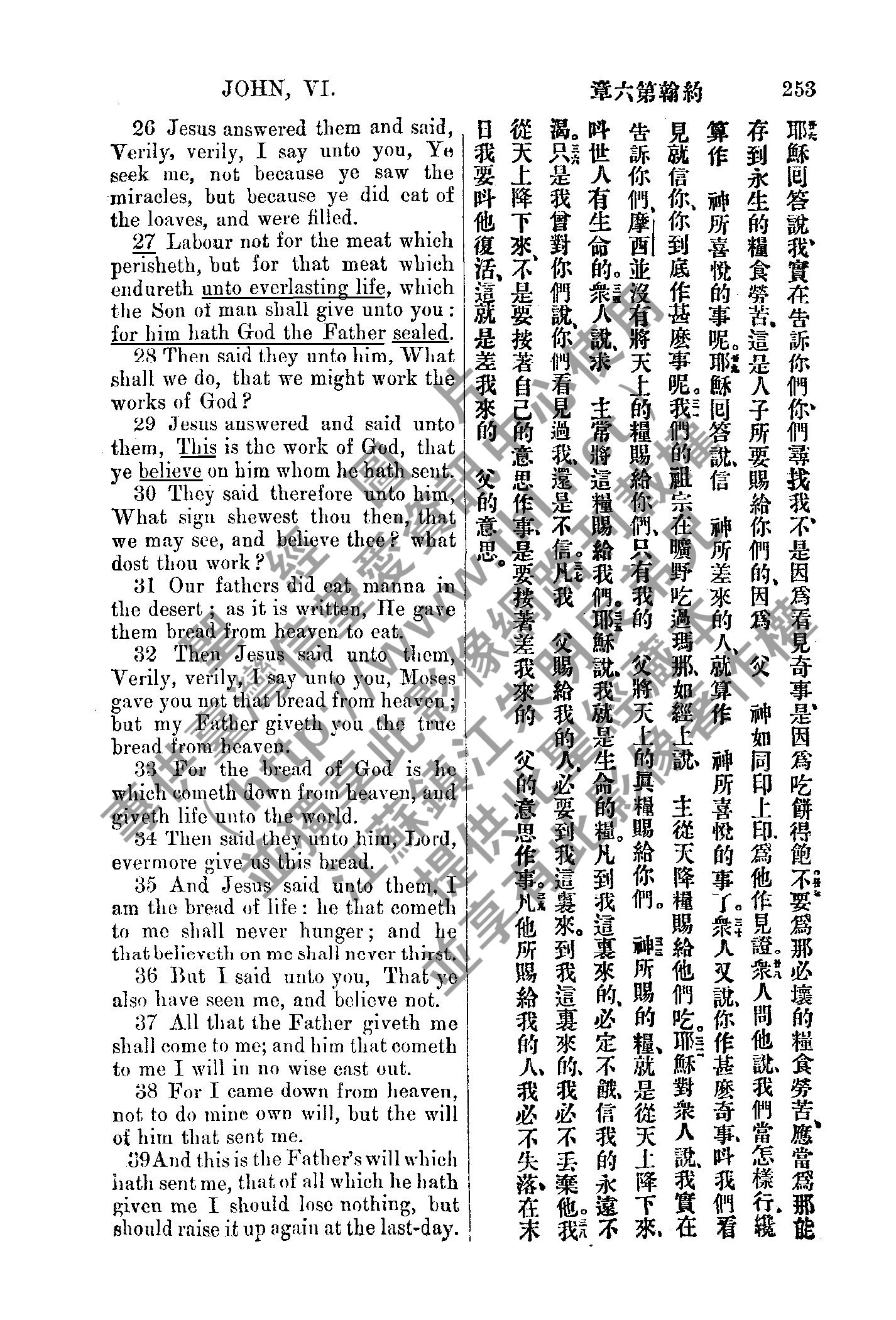 1885年新約全書 約翰福音 6 章 26 節到 6 章 39 節