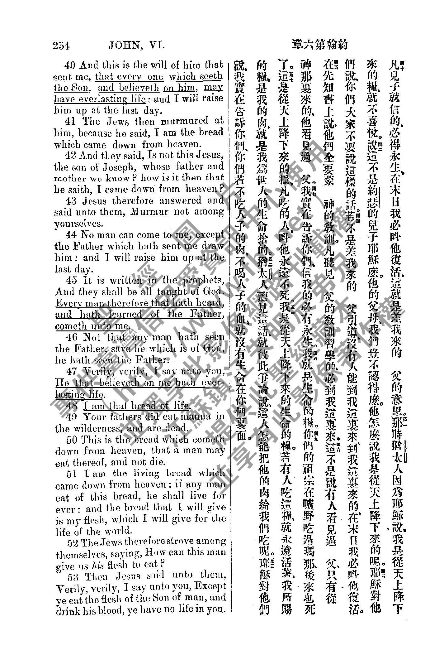 1885年新約全書 約翰福音 6 章 40 節到 6 章 53 節