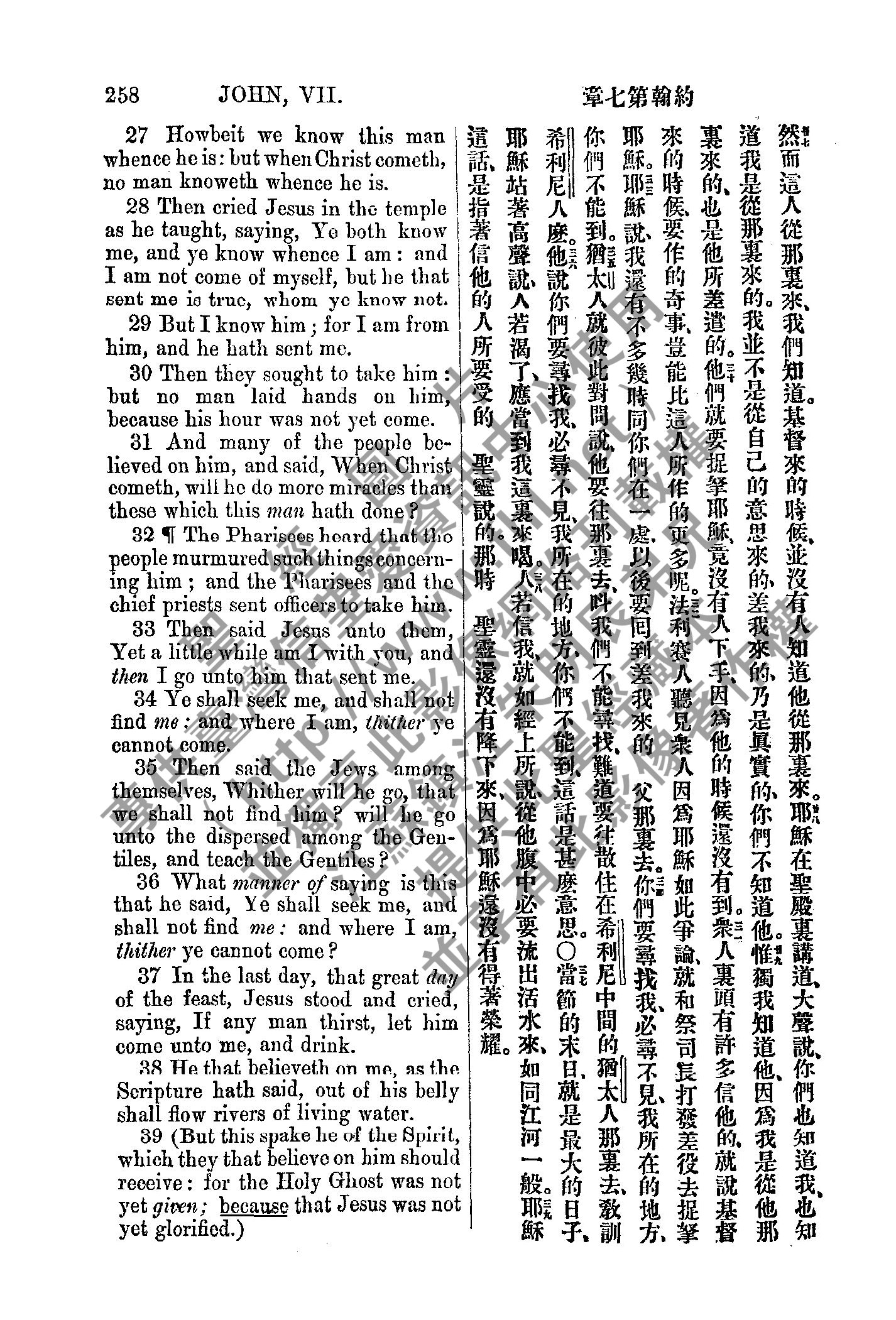 1885年新約全書 約翰福音 7 章 27 節到 7 章 39 節