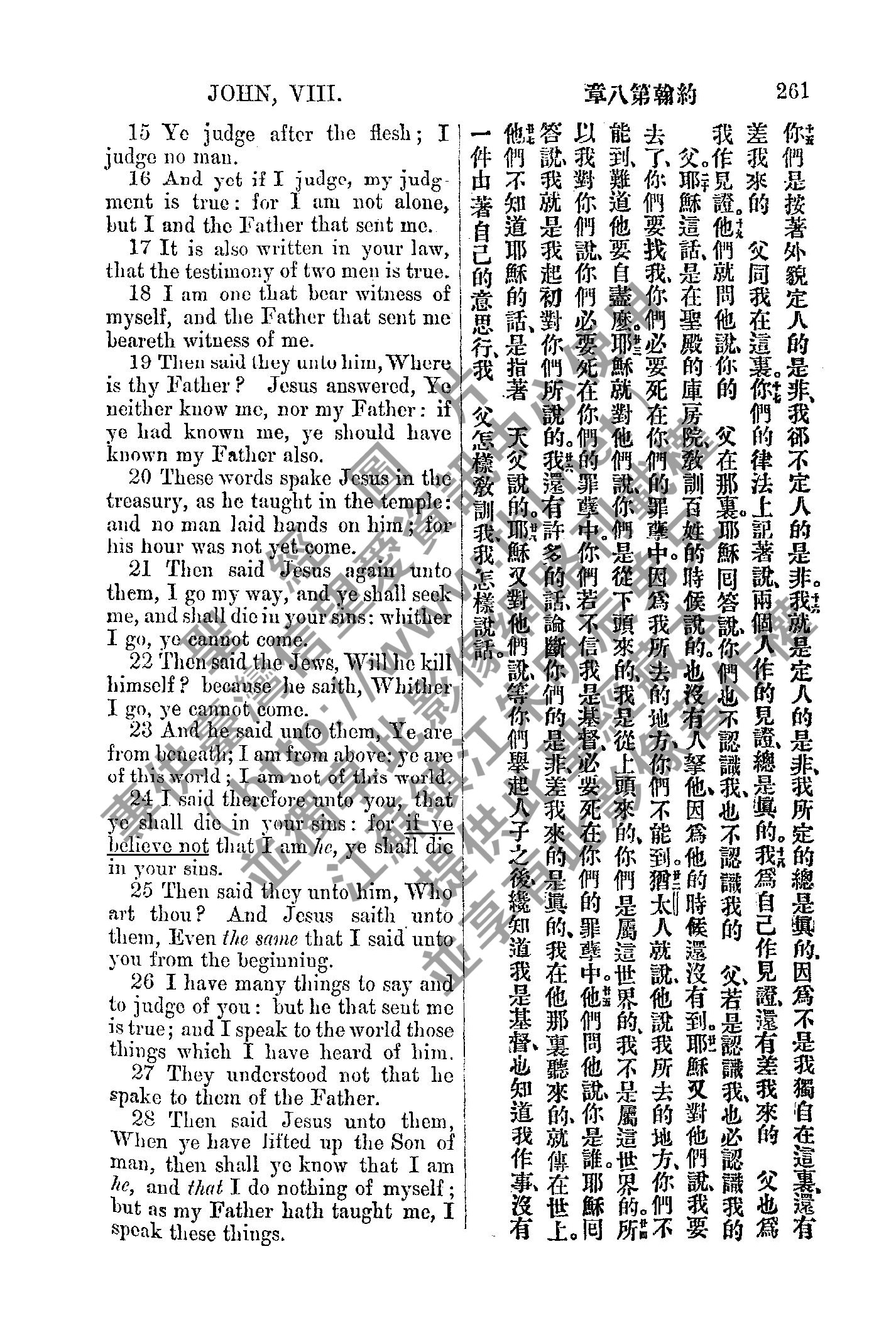 1885年新約全書 約翰福音 8 章 4 節到 8 章 28 節