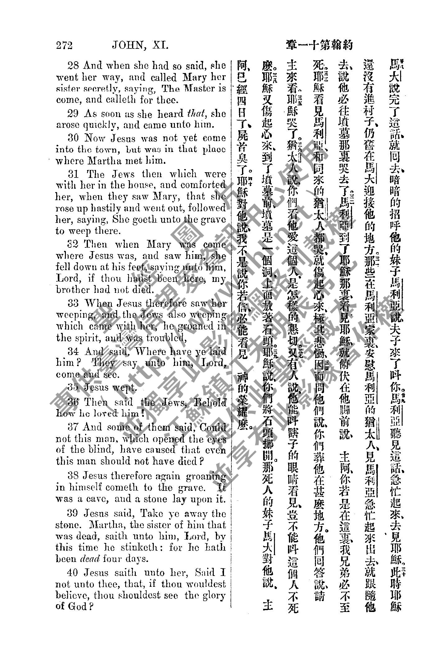 1885年新約全書 約翰福音 11 章 28 節到 11 章 40 節