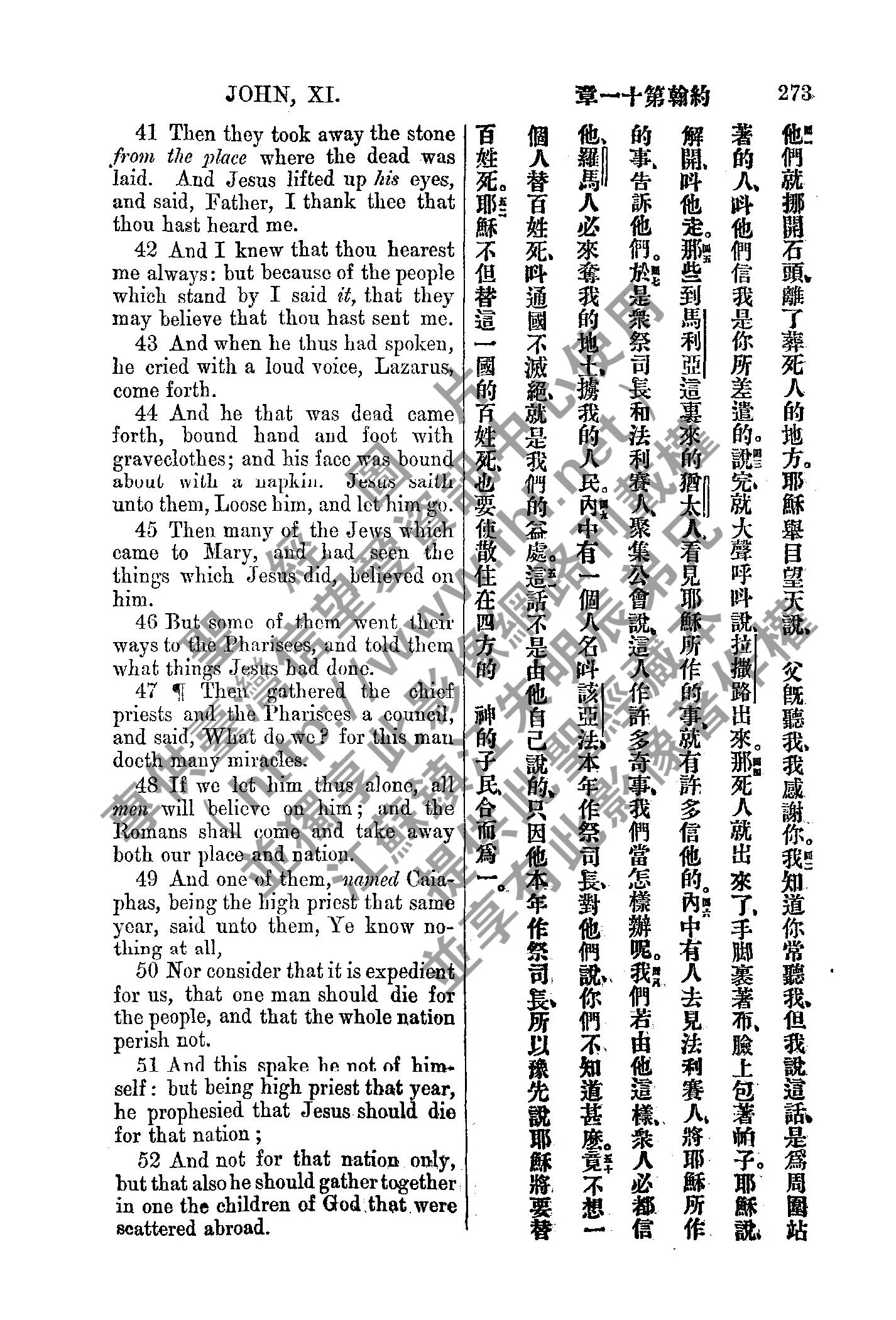 1885年新約全書 約翰福音 11 章 41 節到 11 章 52 節