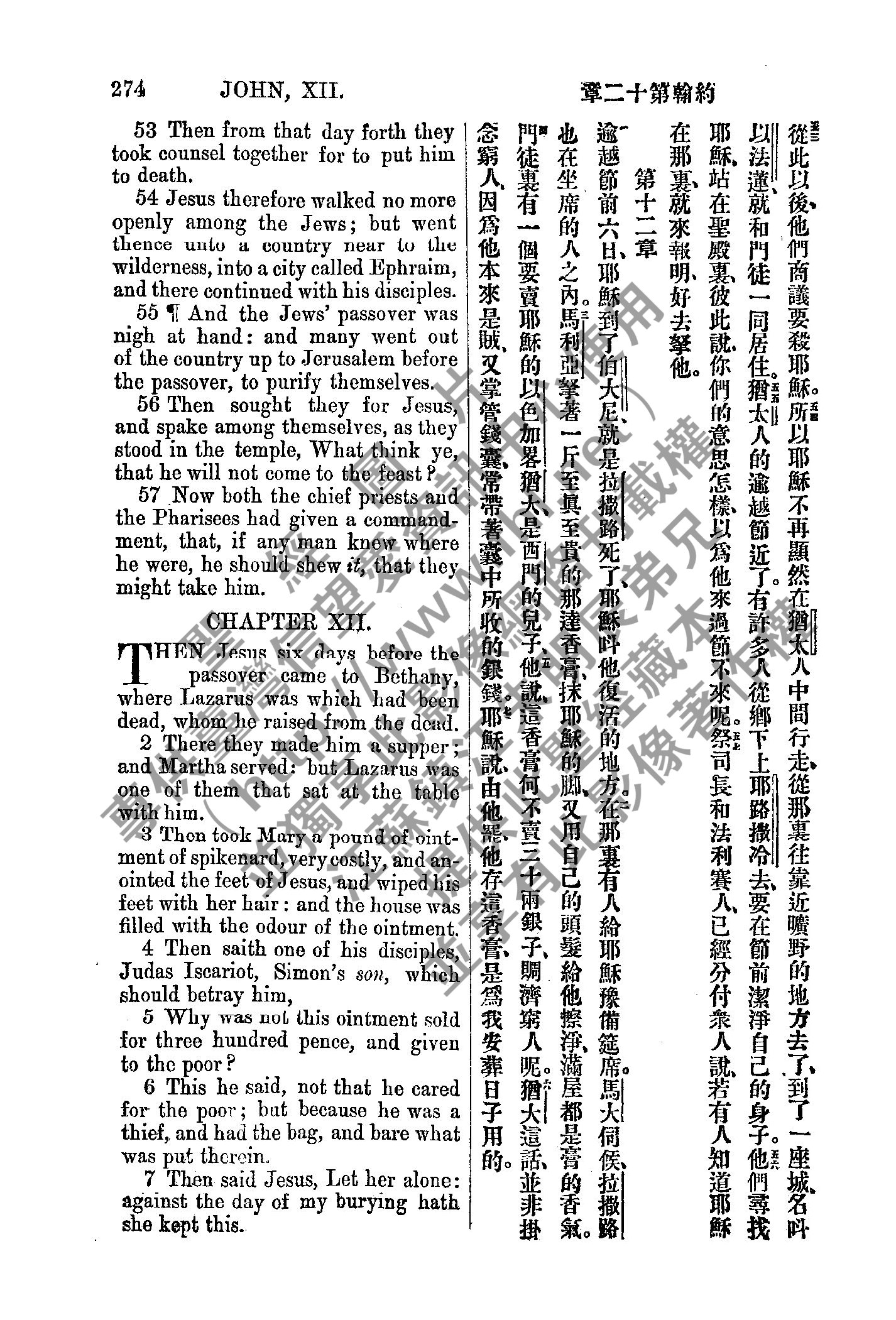 1885年新約全書 約翰福音 11 章 53 節到 12 章 7 節