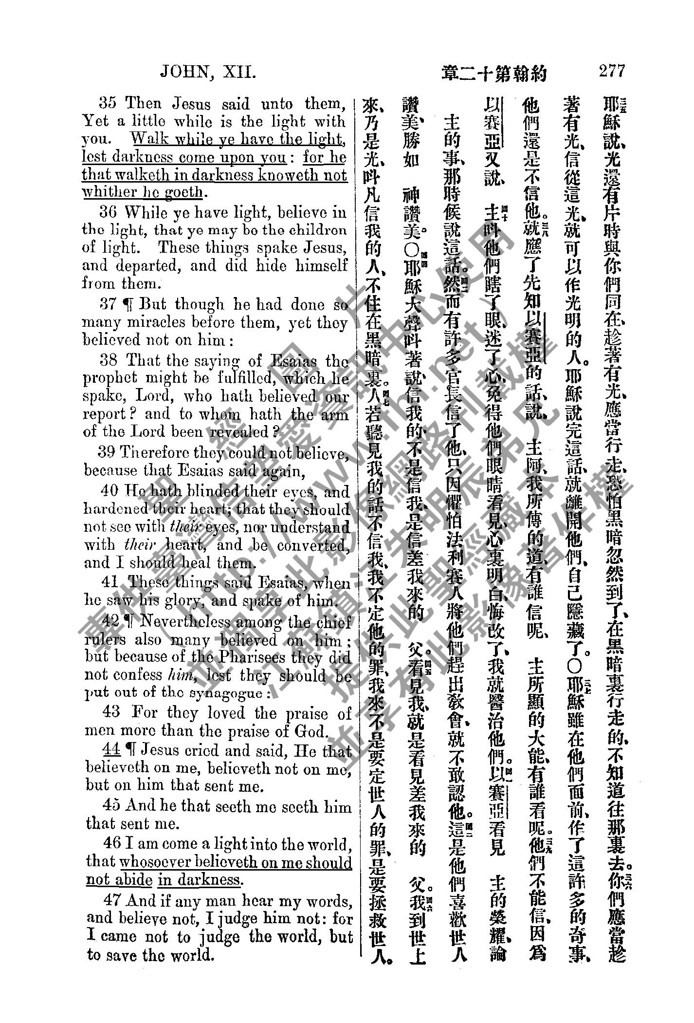 1885年新約全書 約翰福音 12 章 35 節到 12 章 47 節