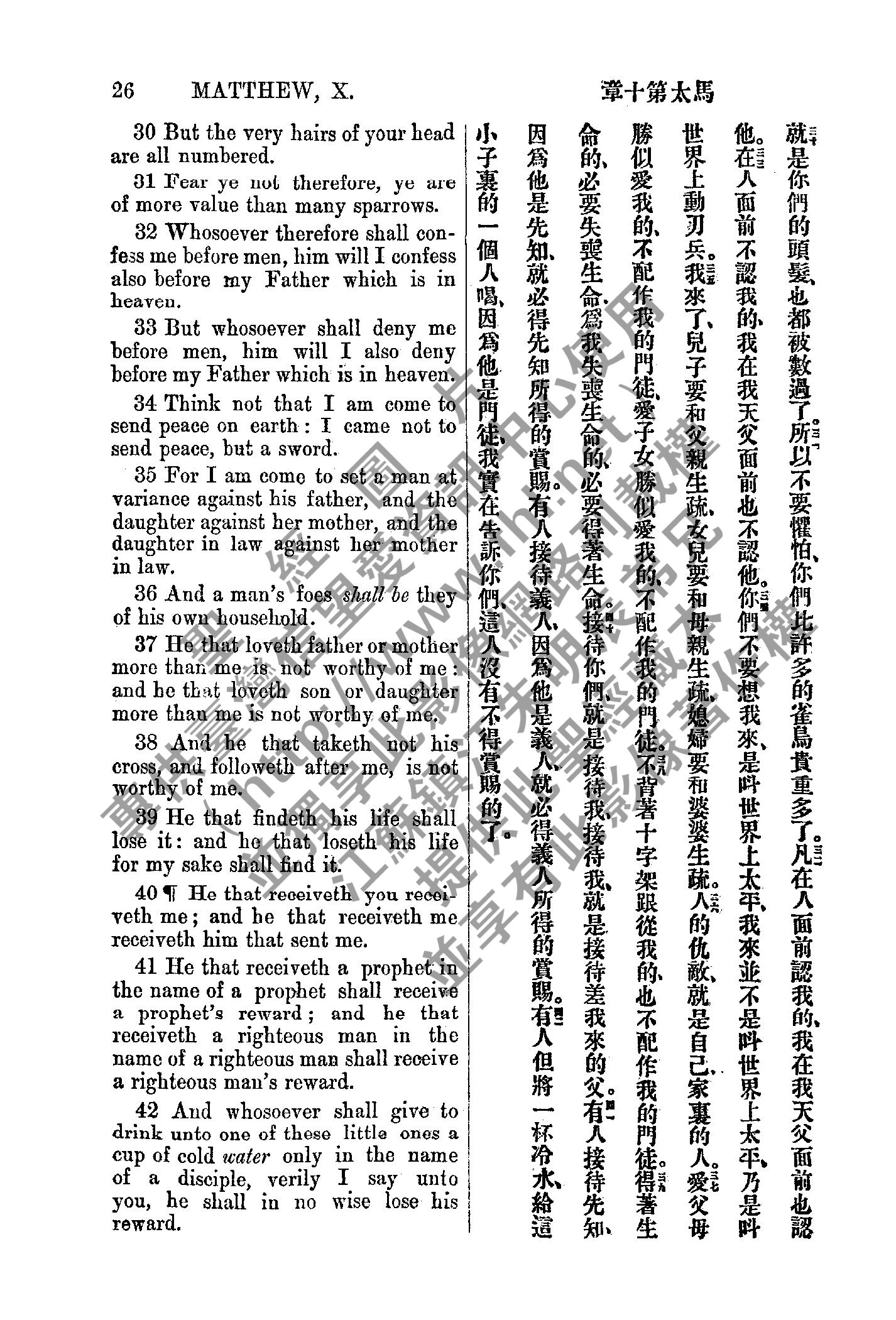 1885年新約全書 馬太福音 10 章 30 節到 10 章 42 節