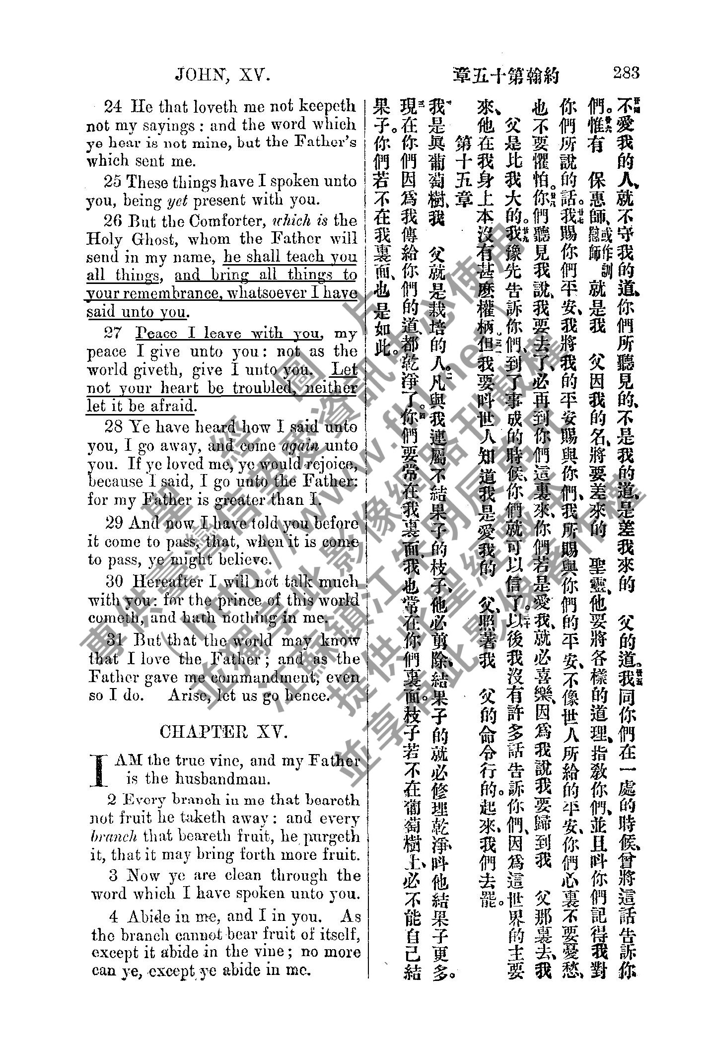 1885年新約全書 約翰福音 14 章 24 節到 15 章 4 節